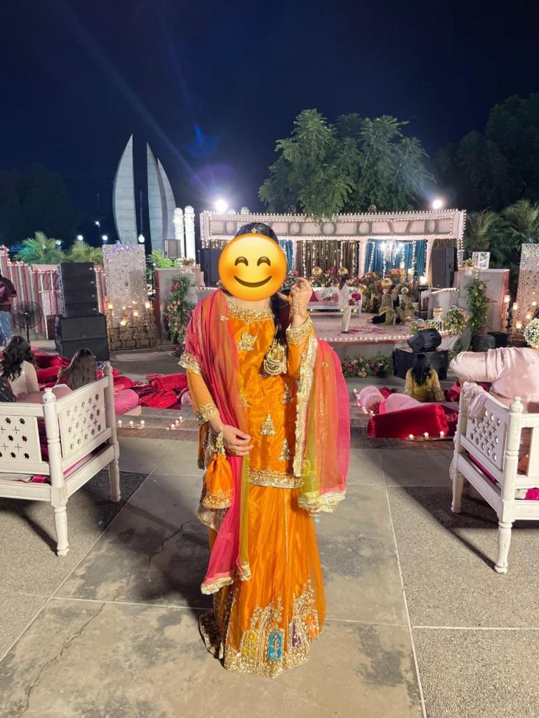 with matching Pouch and free matching Jewellery set including ( Necklace, earrings, Matha patti hair accessory, Jhoomer )