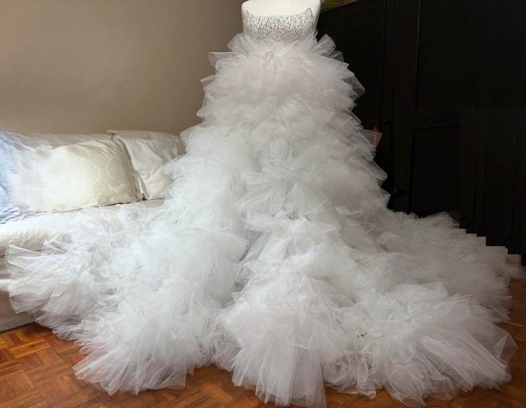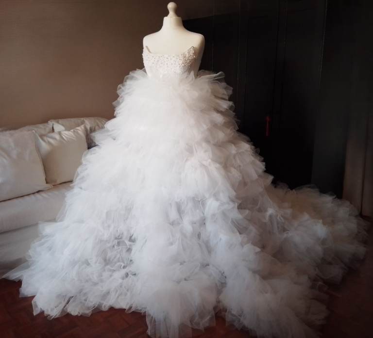 This gown 'Julia' ('Matias Couture') is brand new, never worn, not altered. The full price was £2500, reduced to £1500.