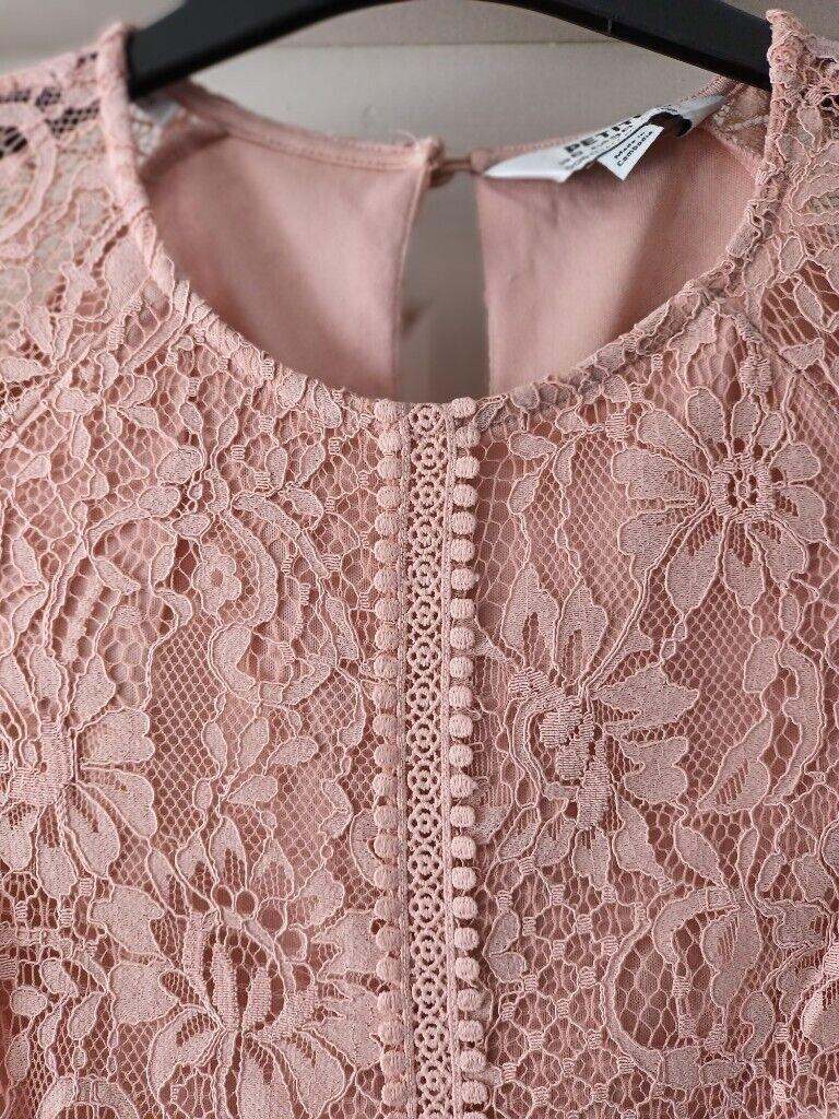 Salmon coloured dress petite size 10 brand new still with label on suitable for mother of the bride or a party very pretty dress