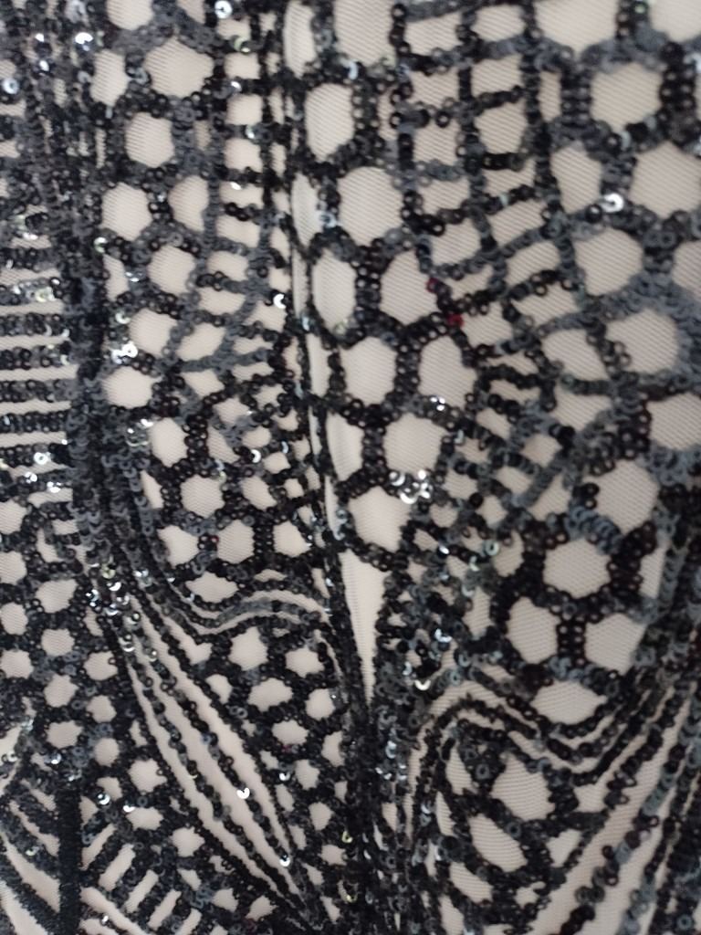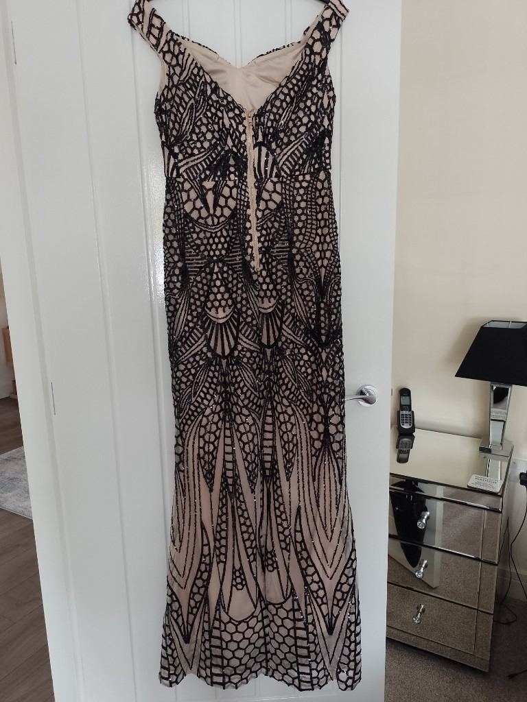 Ladies bardot style evening dress, nude with black sequins (says Medium on label) but would say size 10. Looks fabulous on. Worn twice in December for evening events, excellent condition, like new. £25.00. Selling as it needs to be worn and not just hung in a wardrobe. Collection is from Howden, East Yorkshire. Thanks for looking.