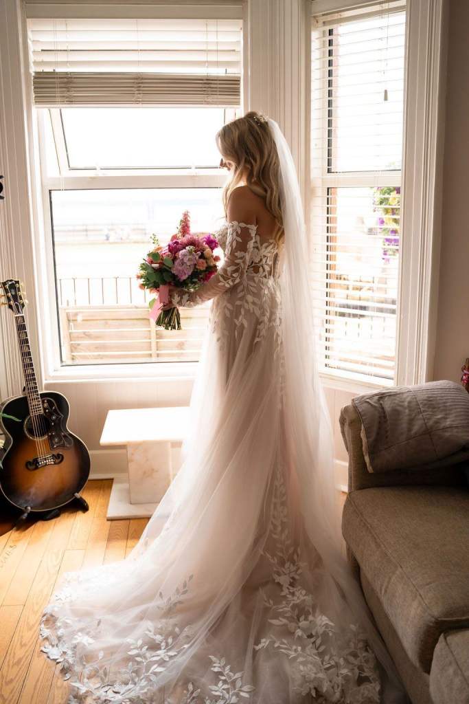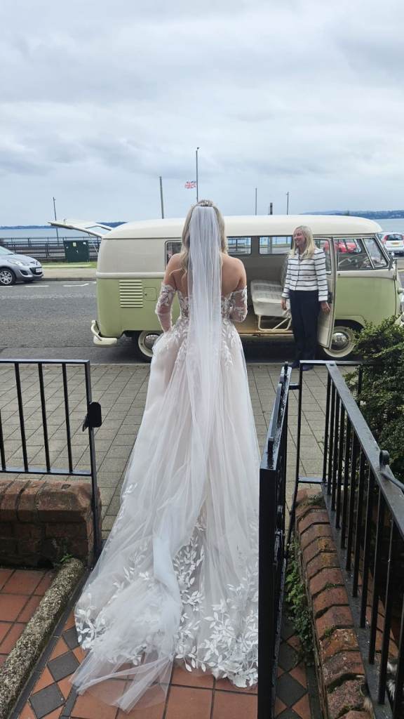 Enzoani weddinh dress with custom made, in Dubai, sleeves and long veil