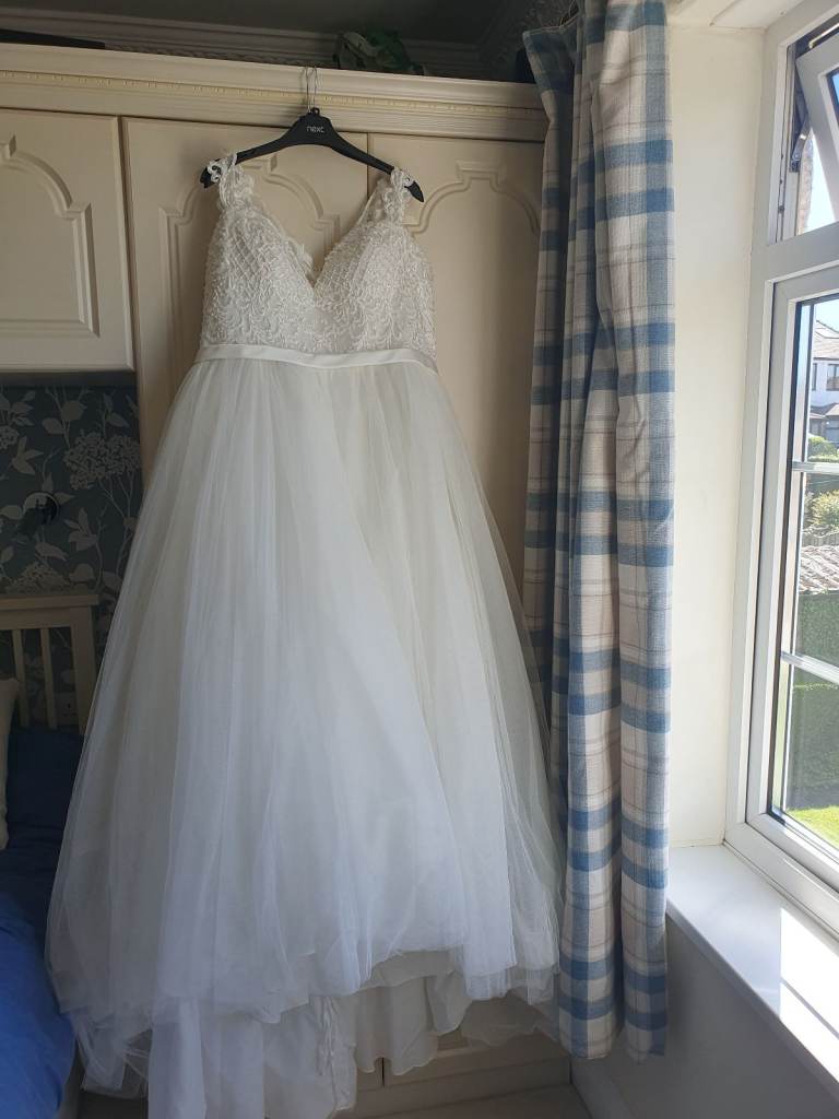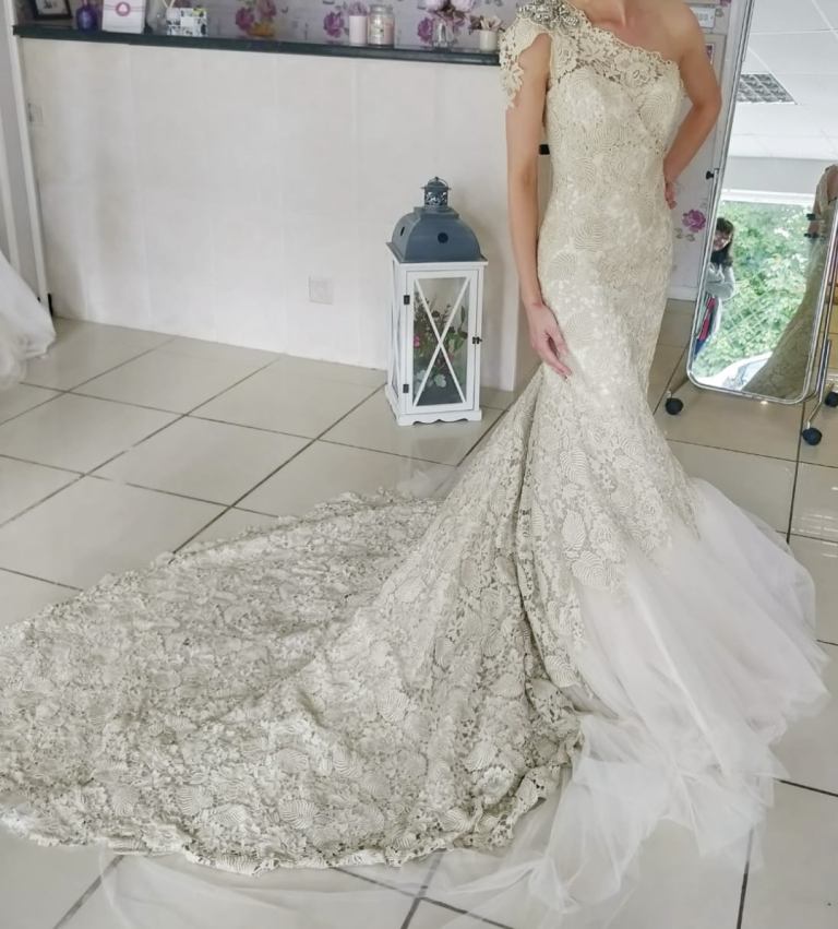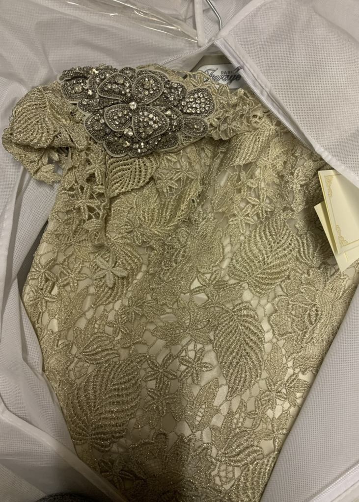 Posting for 2+ yearsFarage gold lace and white tulle wedding dress BNWT