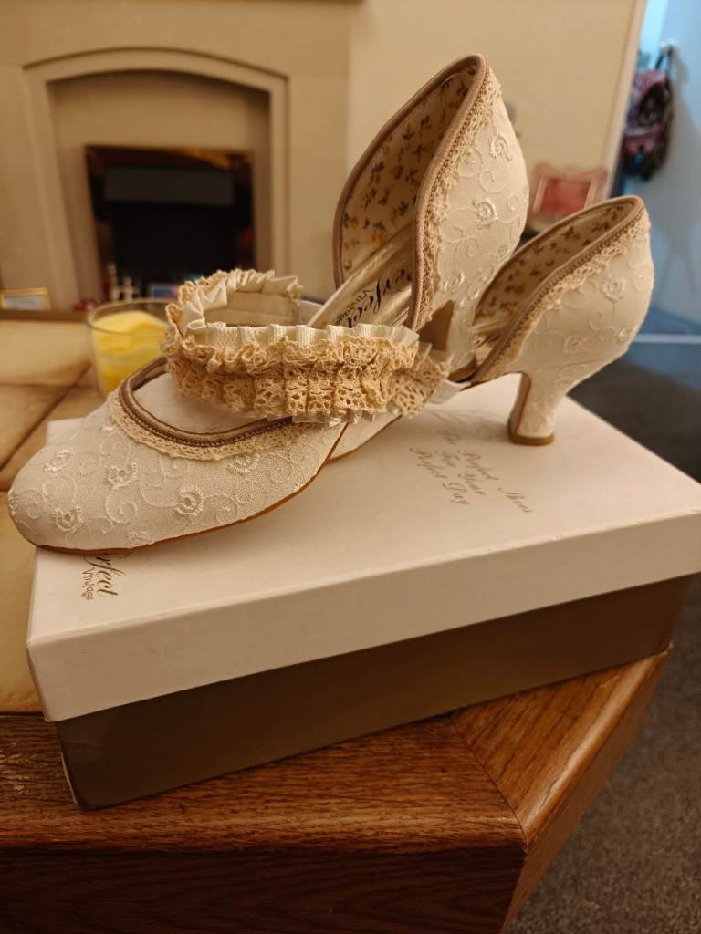 Comes with Size 6 vintage style ruffled shoes, a veil and a gorgeous 1940's tiara....