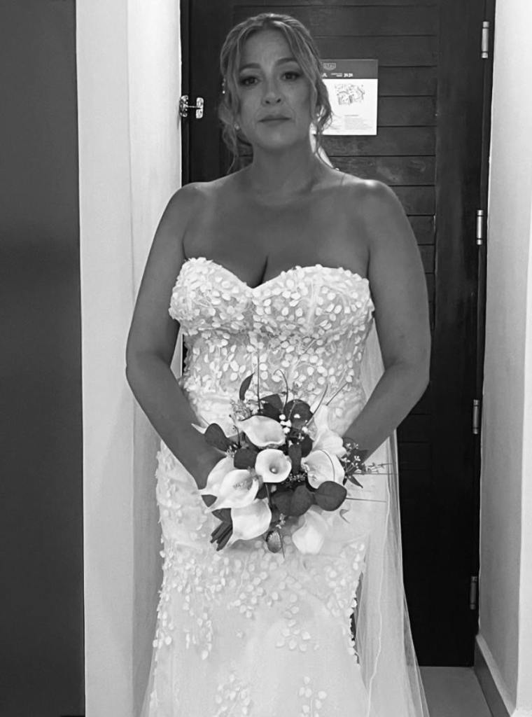 Hilary Morgan ivory wedding dress size 14 with bead and ruch detail
