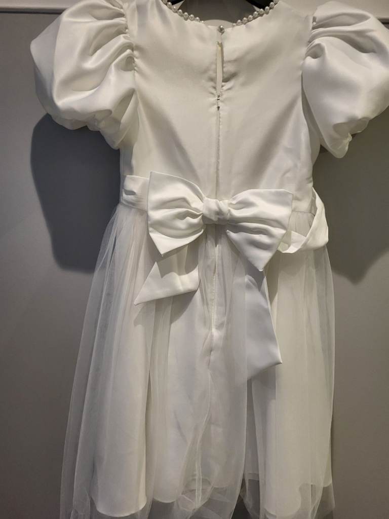 Lipsy Ivory Flower Girl/bridesmaid Puff Sleeve Occasion Dress- size 8