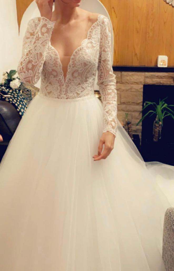 Posting for 5+ yearsLong sleeve Mallory Dawn wedding dress by Maggie Sottero