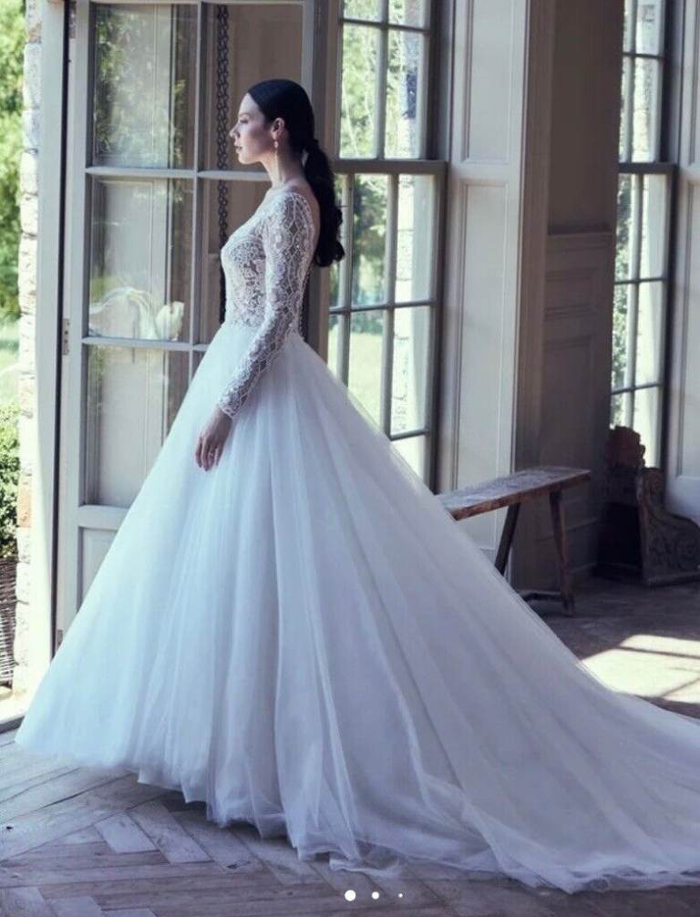 Sexy, romantic, and utterly feminine, this long-sleeve ball gown wedding dress is a transformative thing to behold, but even better to wear IRL.