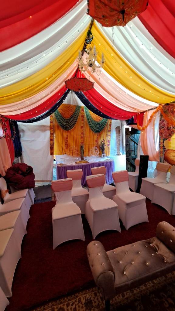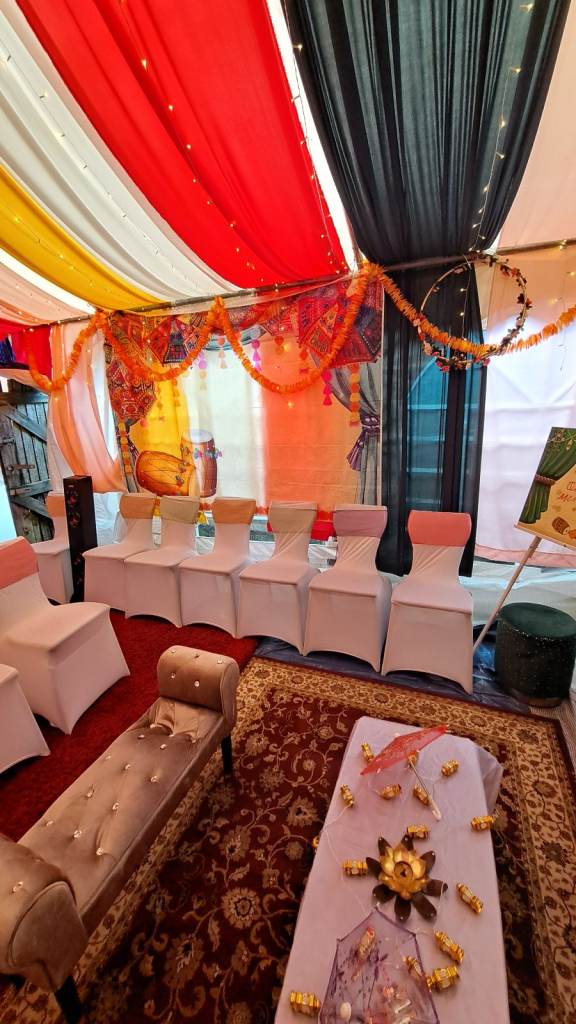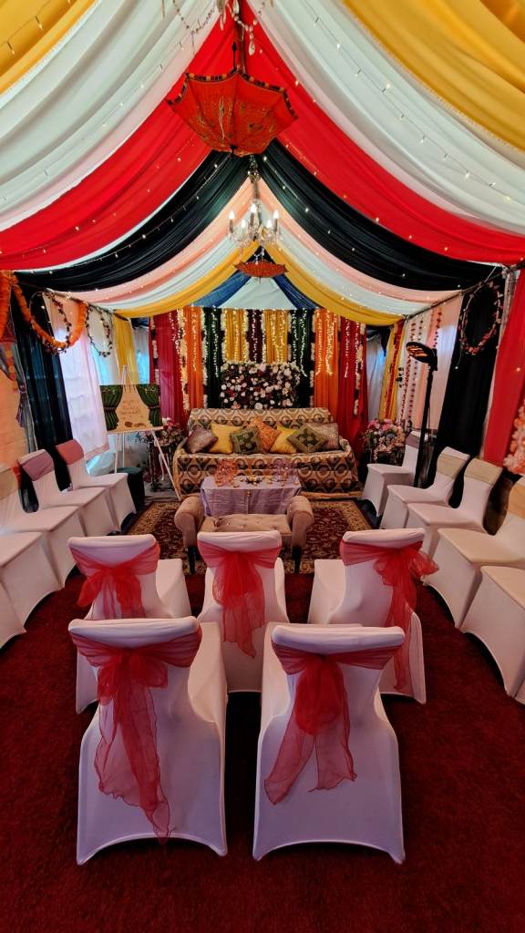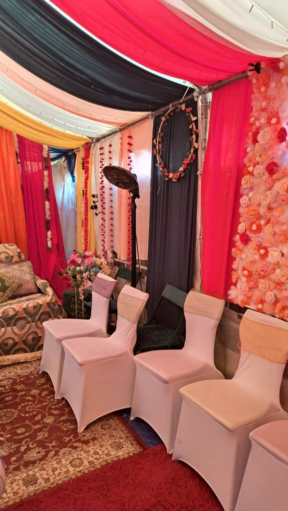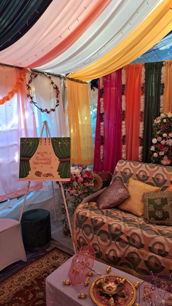 Mehndi set up in marque with the following: