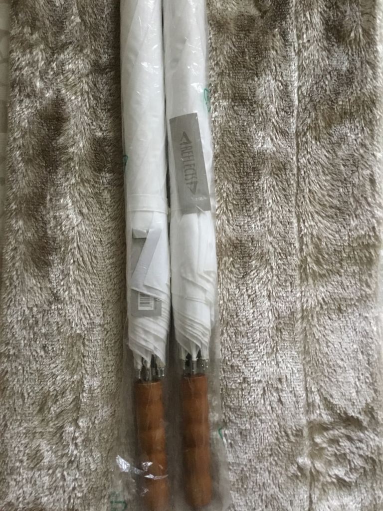 Two New Wedding Umbrellas with wood handles never used still with tags