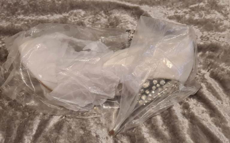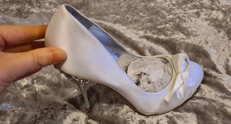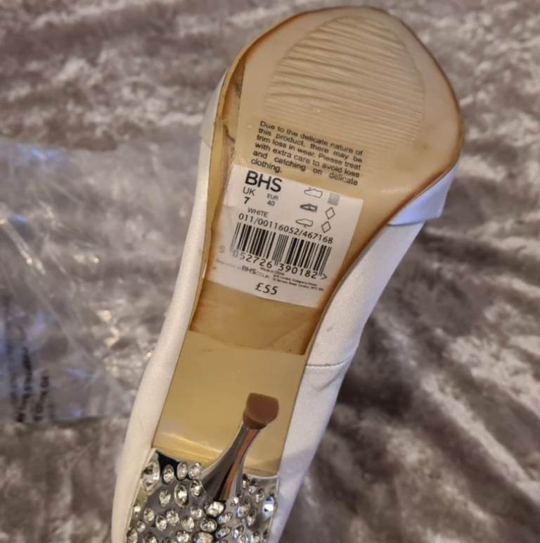 Brand new with original labels only ever tried on. As I also purchased lace shoes to match my wedding dress. I have kept these shoes for many years. But think it's time to let another bride or lady put them to use.