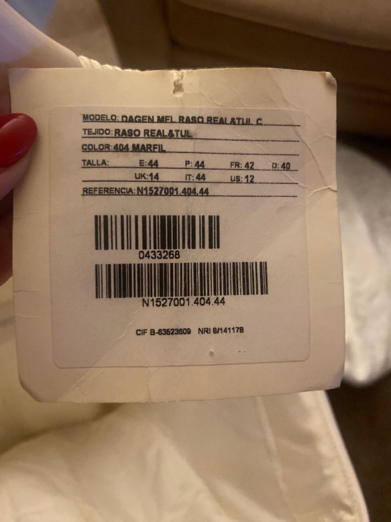 Uk size 12 (though bridal can be smaller than high street price