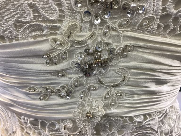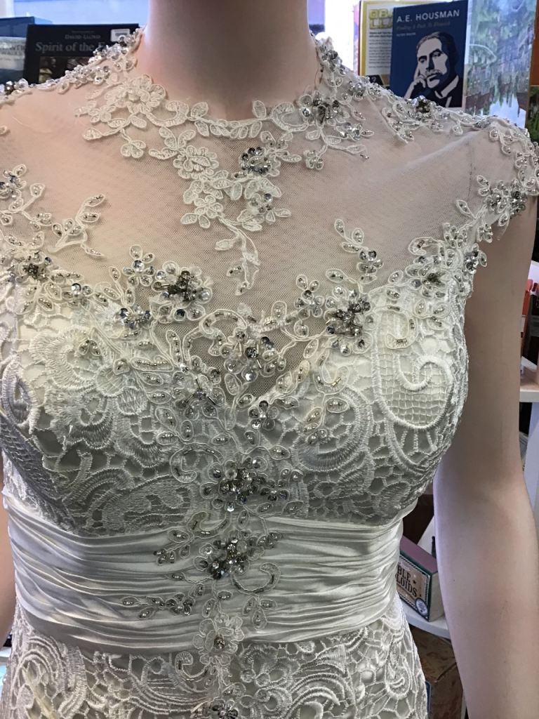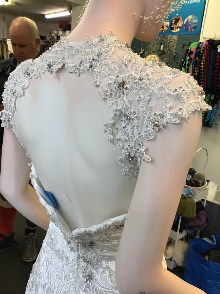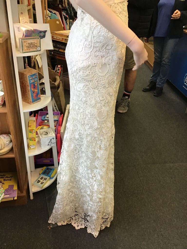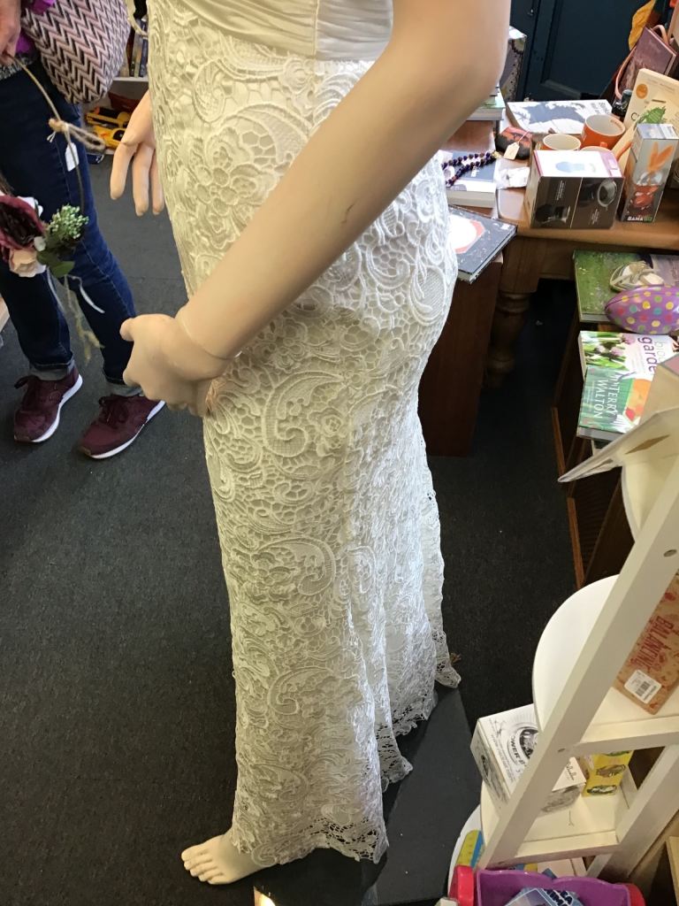 Very pretty lace detail dress in size extra small. Please see our other wedding dresses. Do come to try on in our charity shop, Force Cancer, heavitree, Exeter.