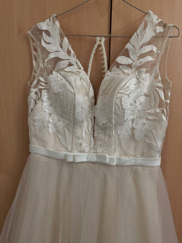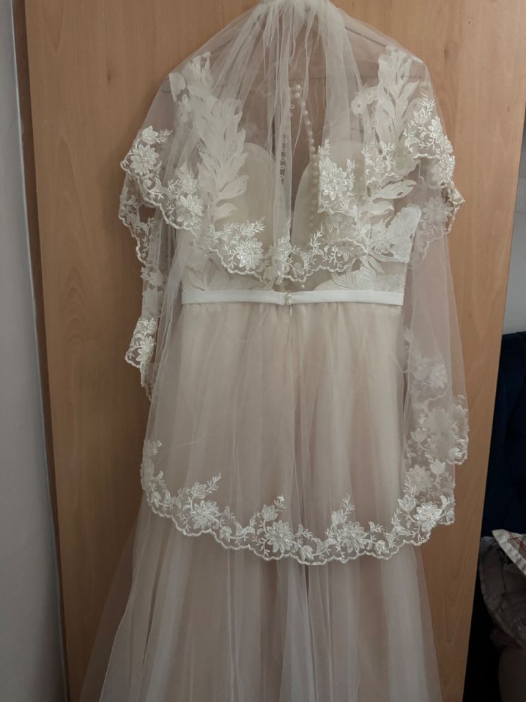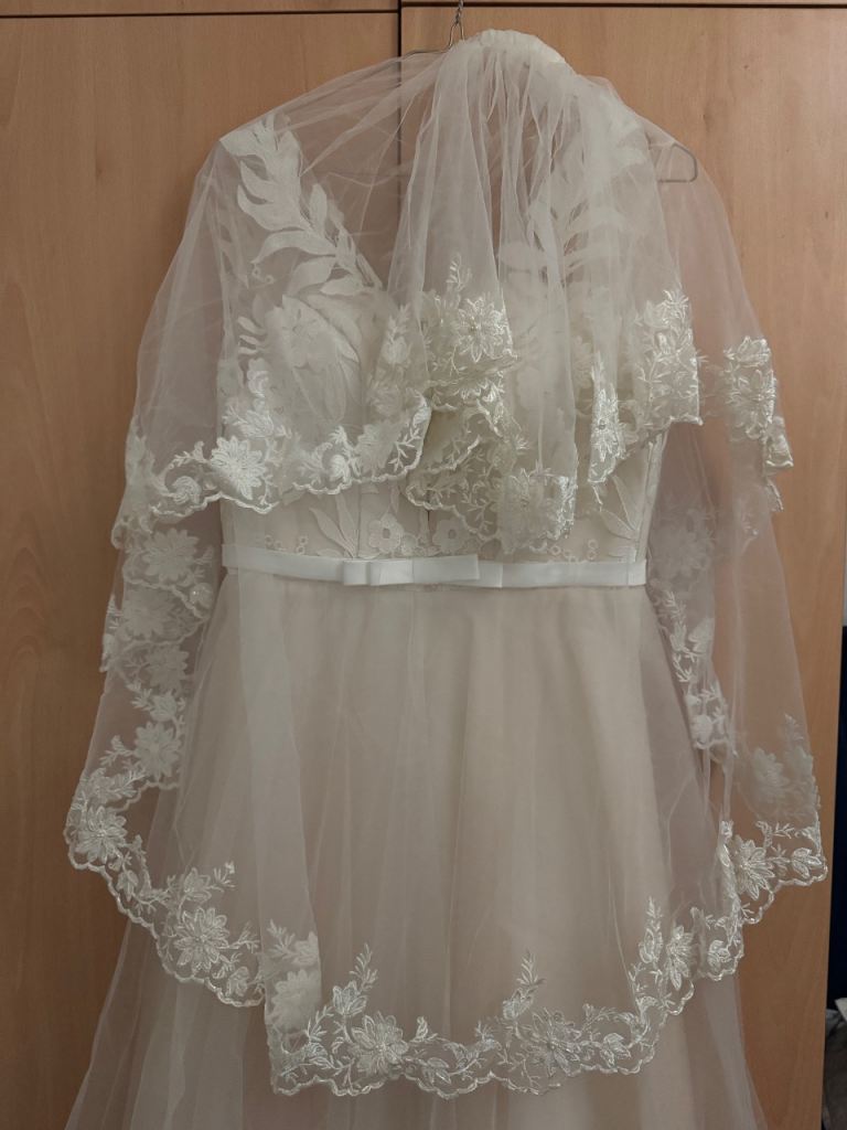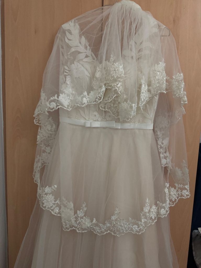 Ivory wedding dress , size 10-12 . Very good condition, fitted perfectly and extremely confortable.