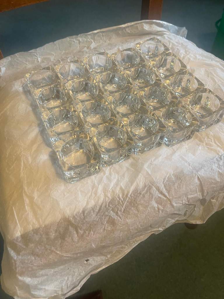 20 beautiful small square glass candle holders 5cm wide 3cm tall.