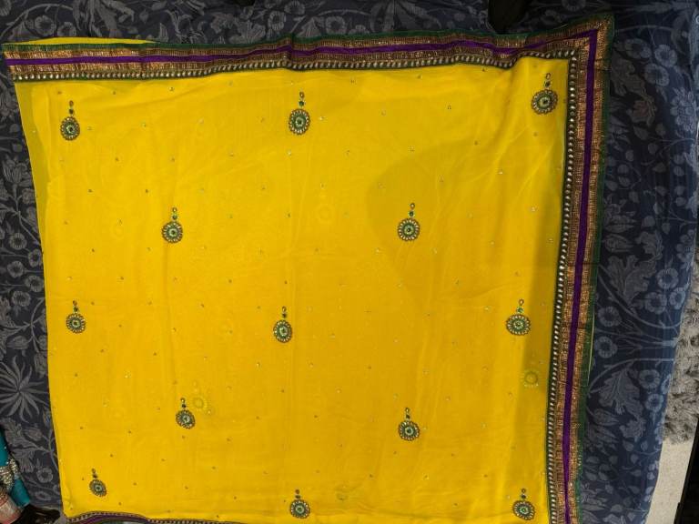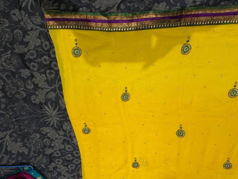 ✨ Bright yellow designer saree