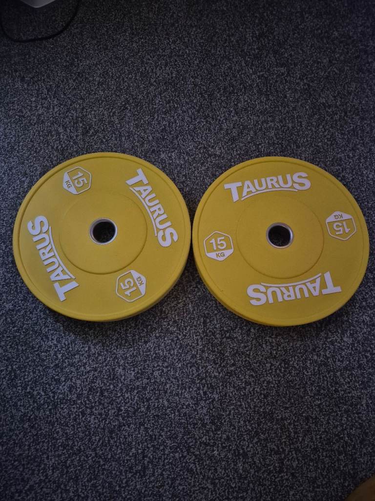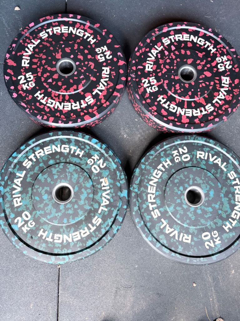 As pictured; 100kg bumper plate set for sale - now surplus to requirements