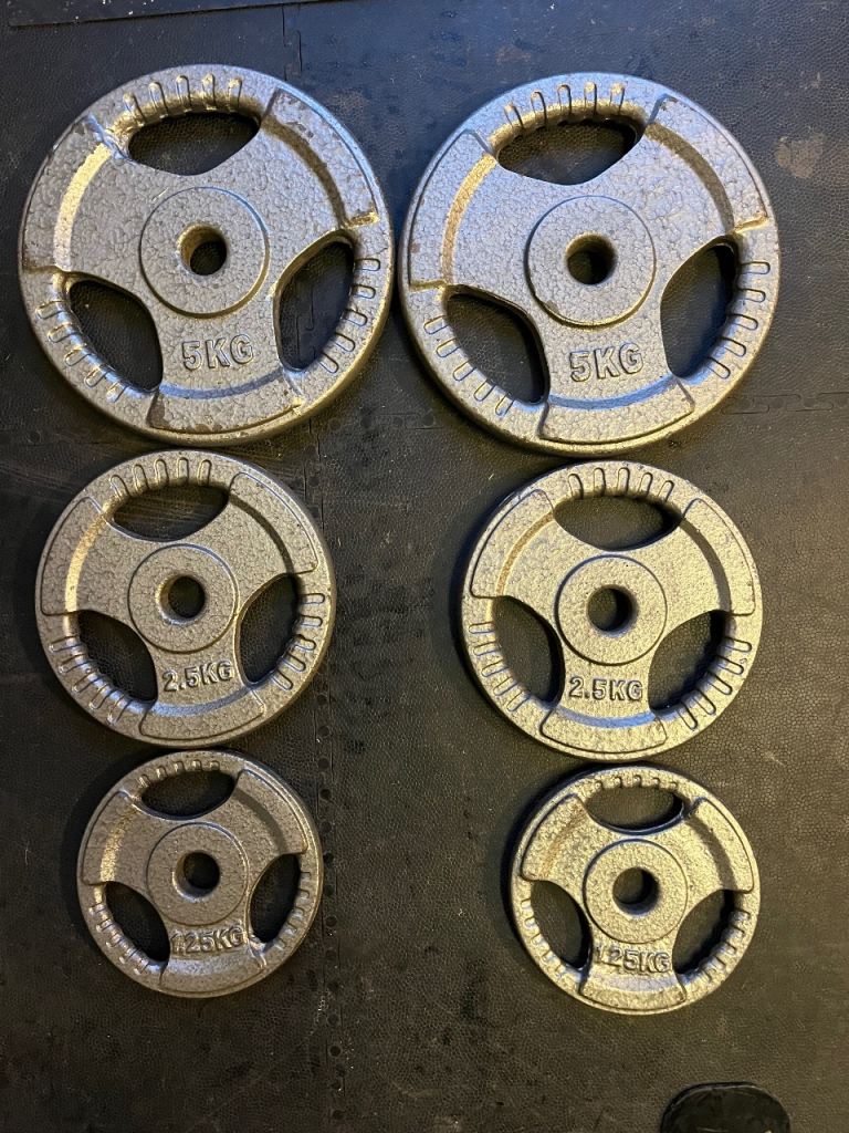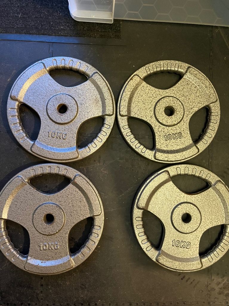 The 20kg Mirafit plates have been used but are in excellent condition