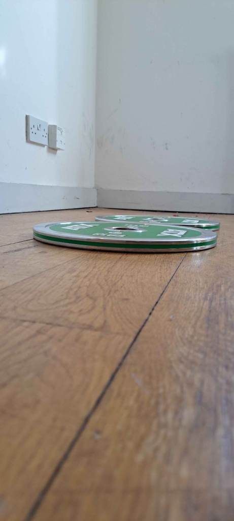 Posting for under a month2x 10kg Silveren ATX Cast Iron Plates – Green – Like New