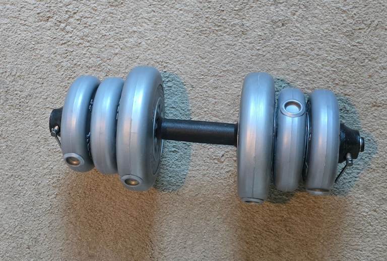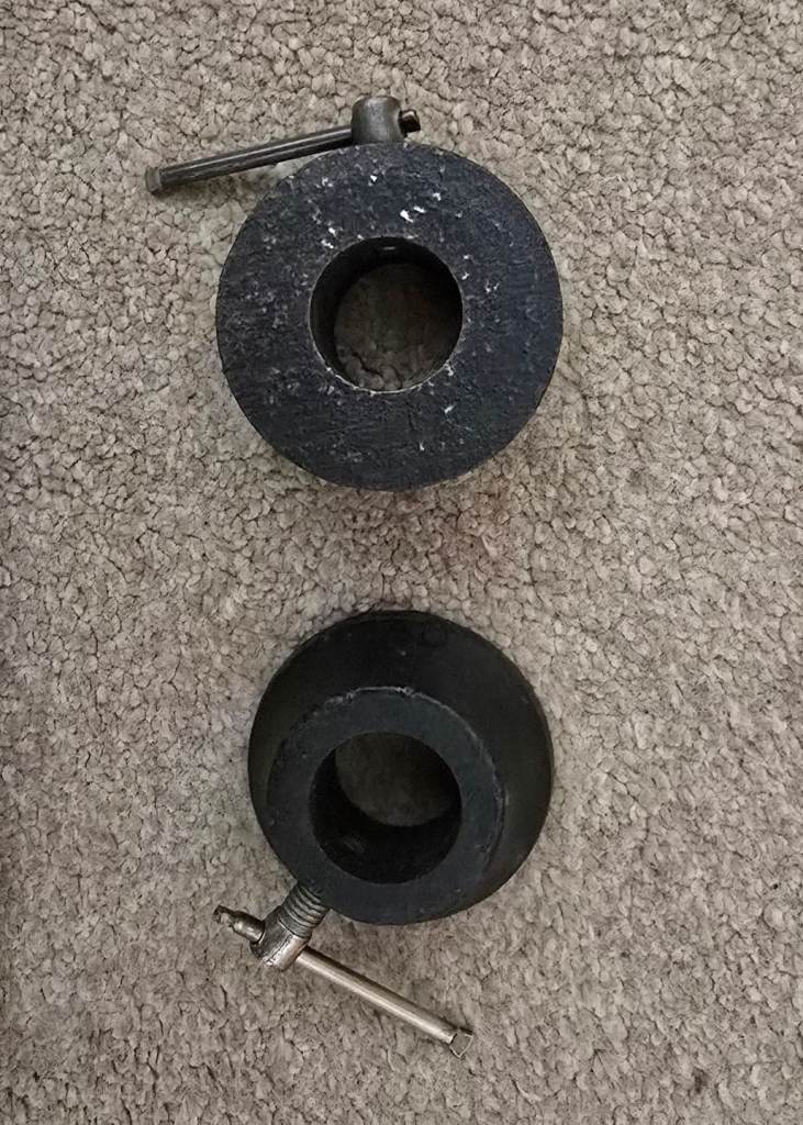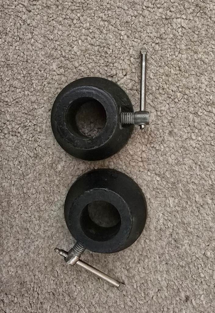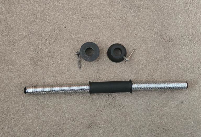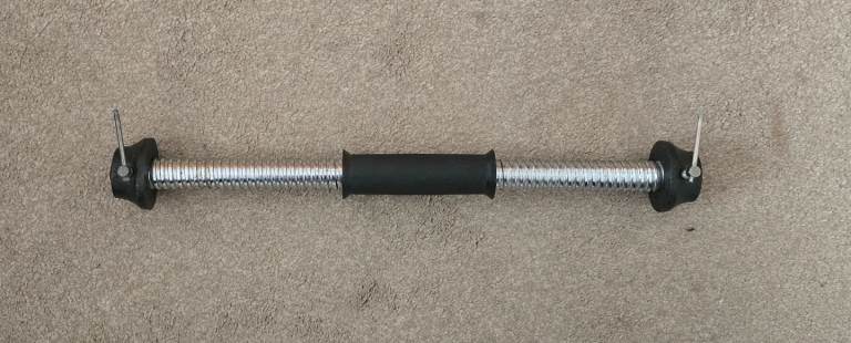 1 x Threaded Chrome Dumbell Bar with Sliding Handle, with 2x Vintage Cast Iron Collars.