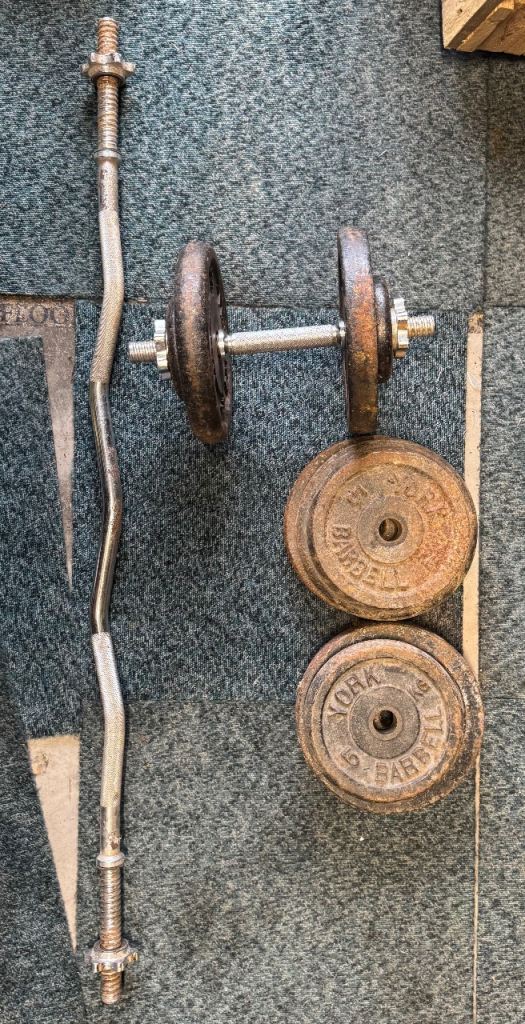 Dumbbell, bar and weights