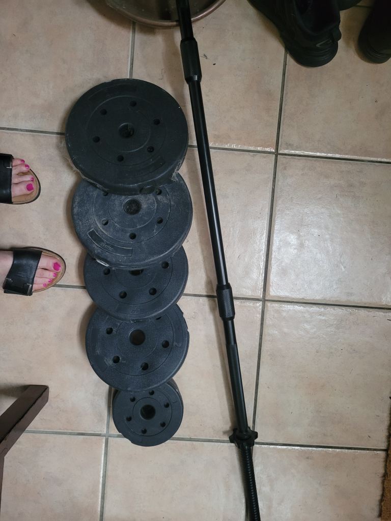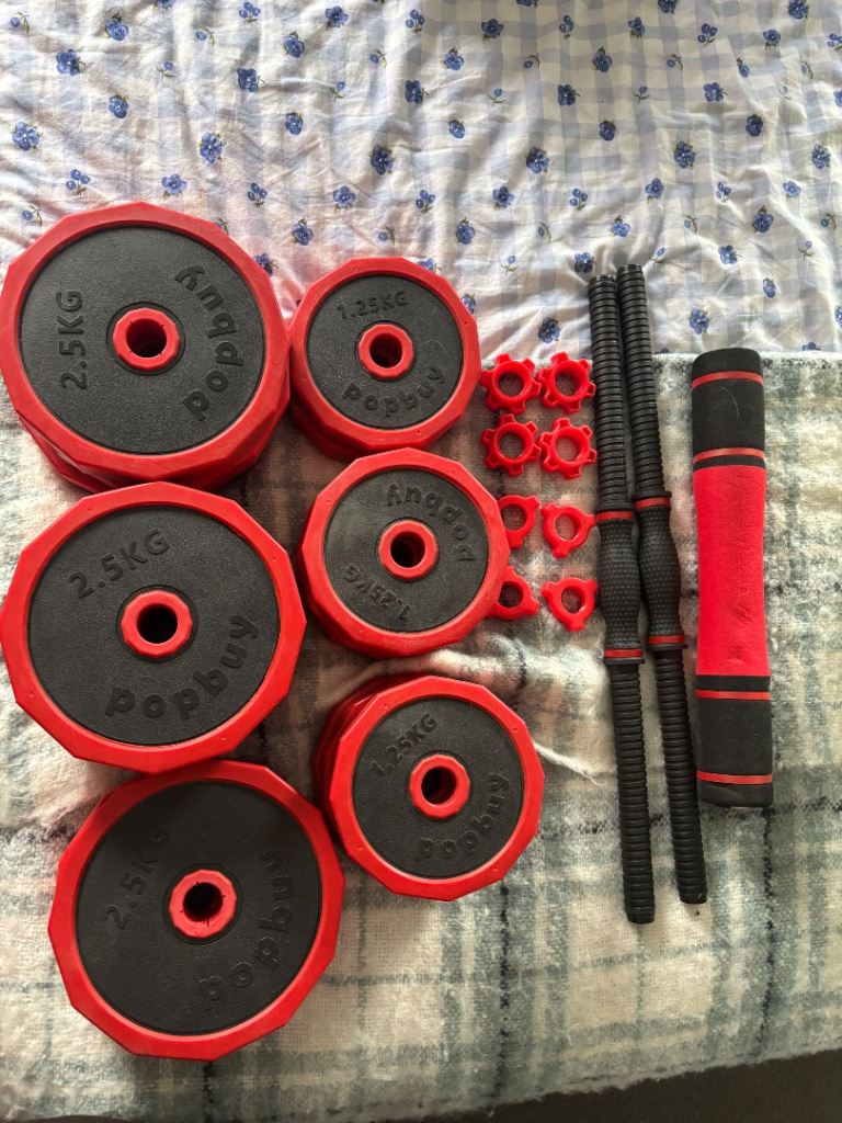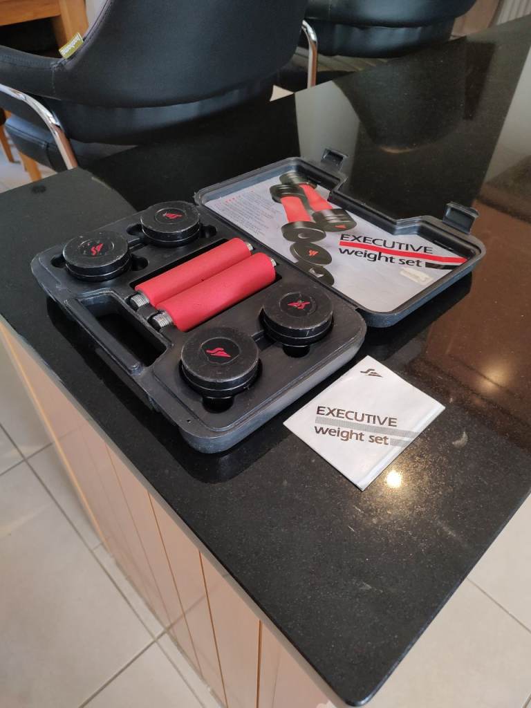 There are 4 x 1 lb and 8 x 1/2 lb weights and the bar grips weigh 1 lb. So they are variable up to 8 lbs.