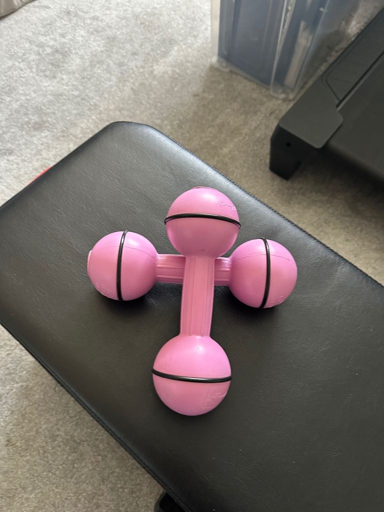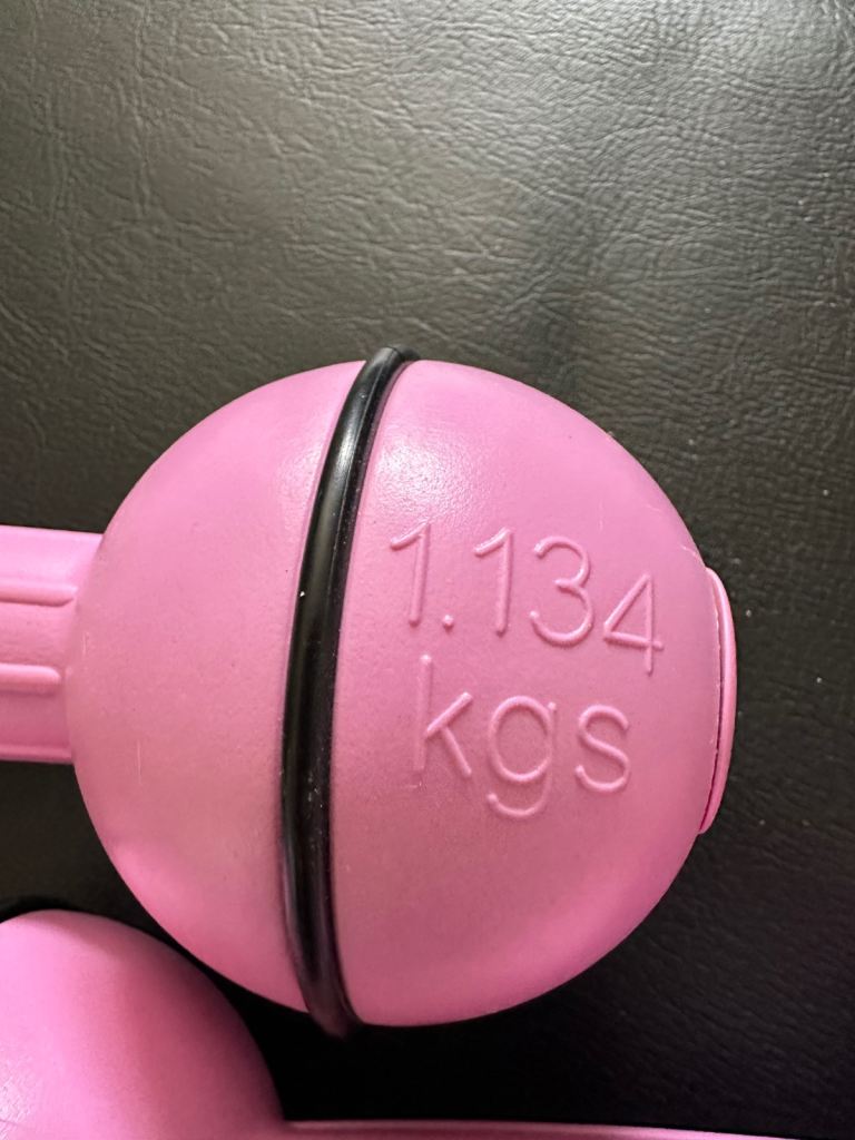 A pair of pink PINEAPPLE dumbbell hand weights, each weighing 2.5lbs or 1.134kgs, which have been very lightly used.