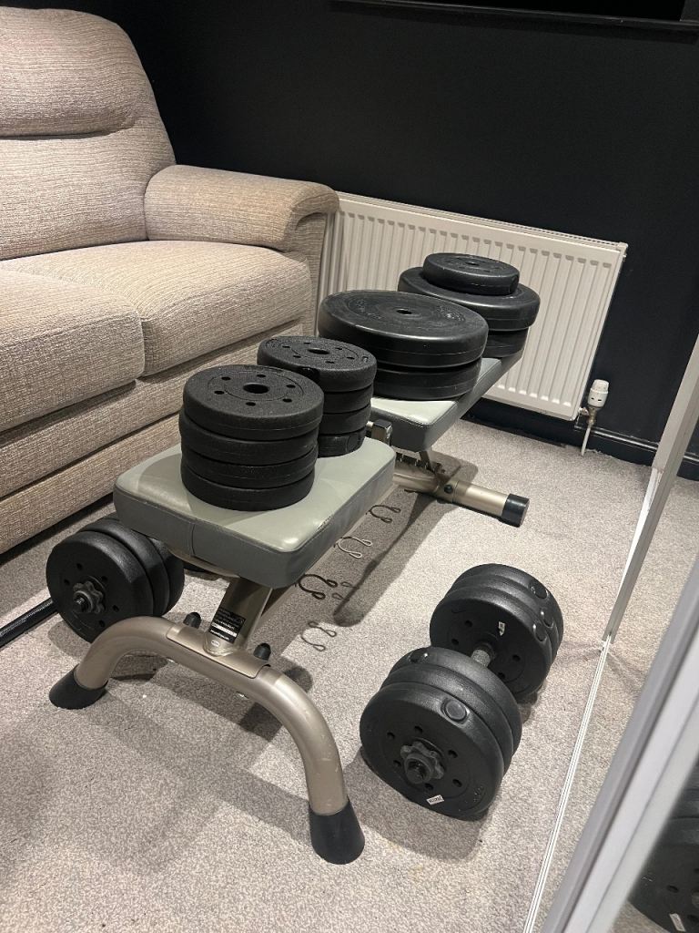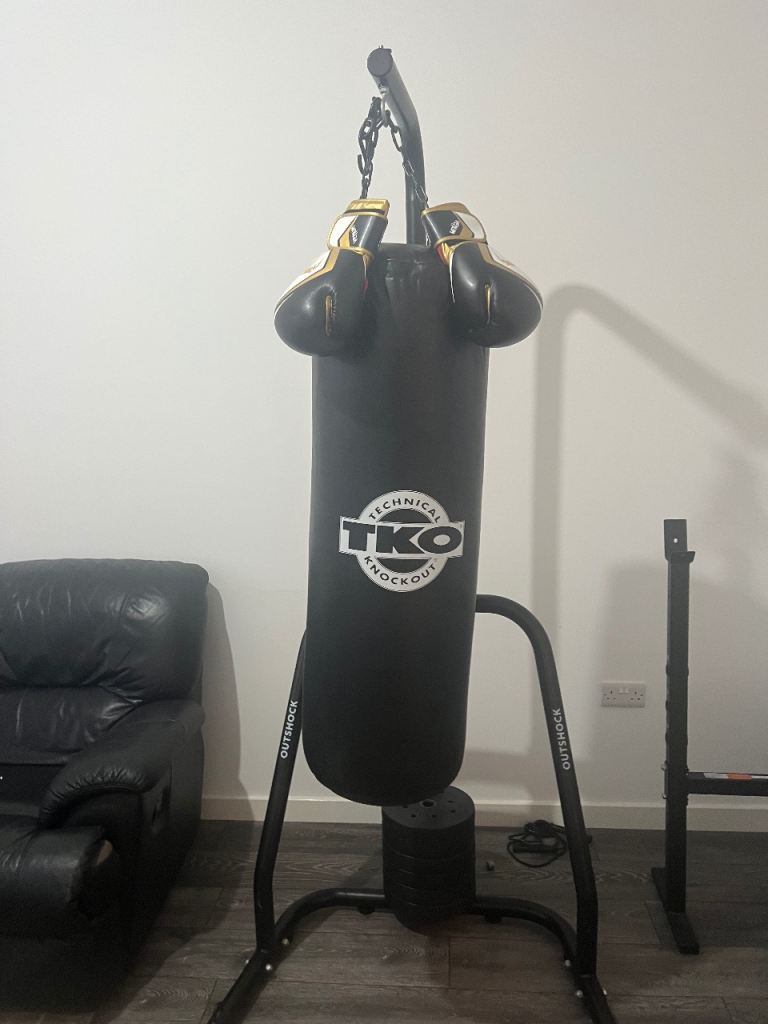 Weight bench weights punch bag and stand all in good condition pick up west Dunbartonshire