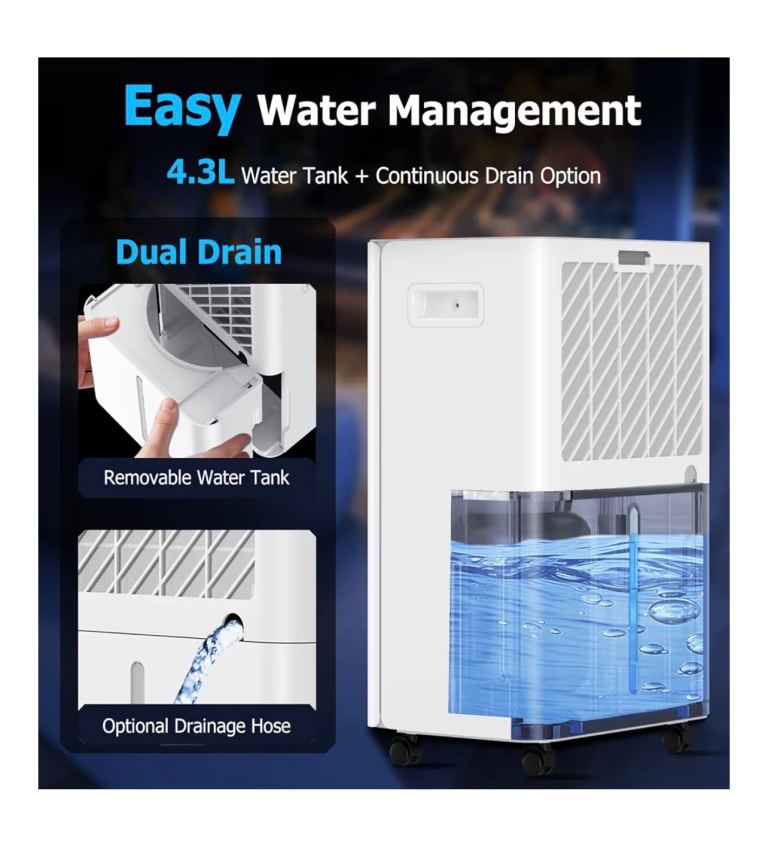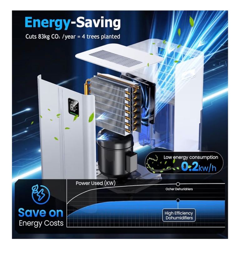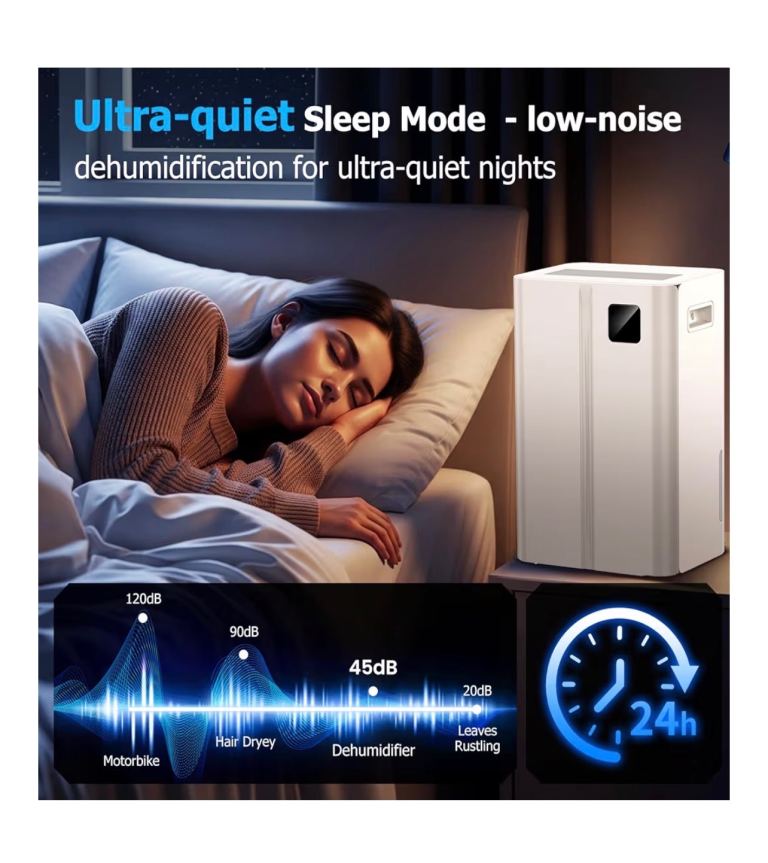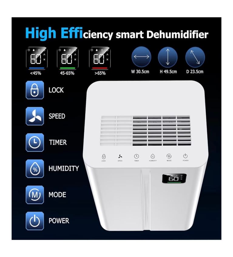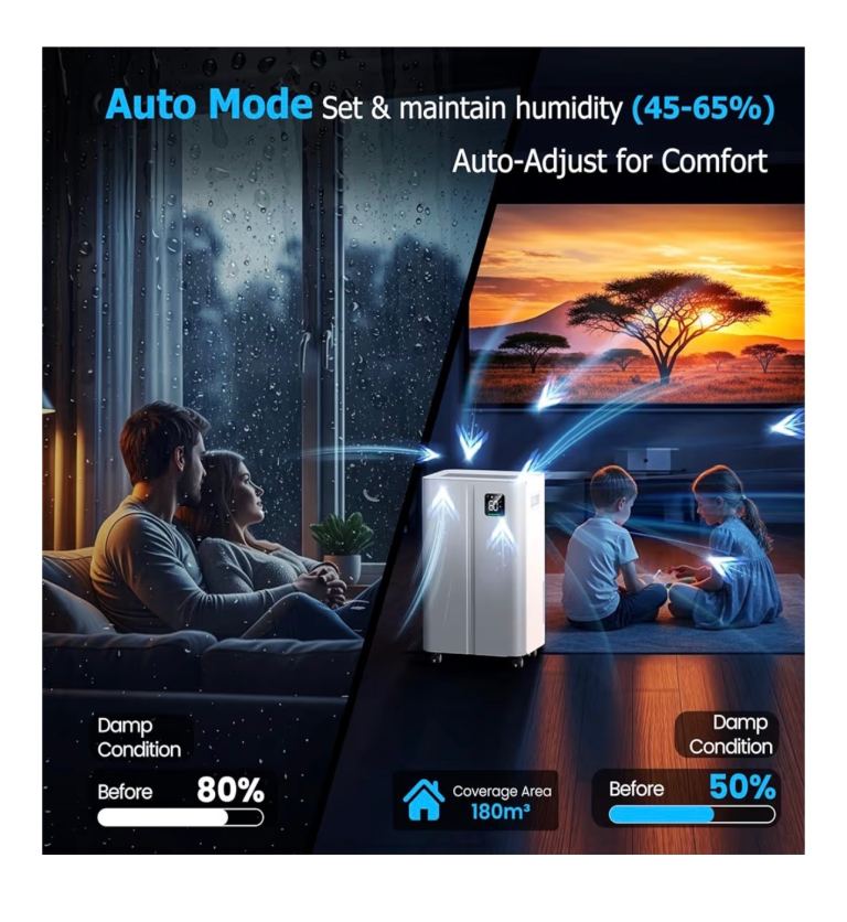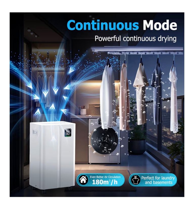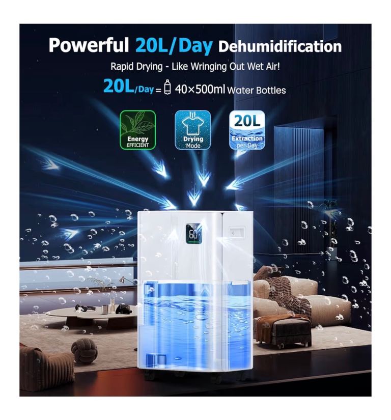 20L/day Dehumidifier with Digital Humidity Sensor & Display - 24-Hour Timer, 3 Dehumidification Modes, Continuous Drain, Ideal for Bedrooms, Office, Basements, White-Upgraded