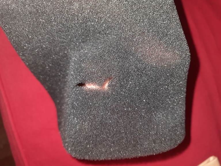 There is a hole in the foam filter, although I've not seen a difference when using it for the one time I used it as a wet cleaner.