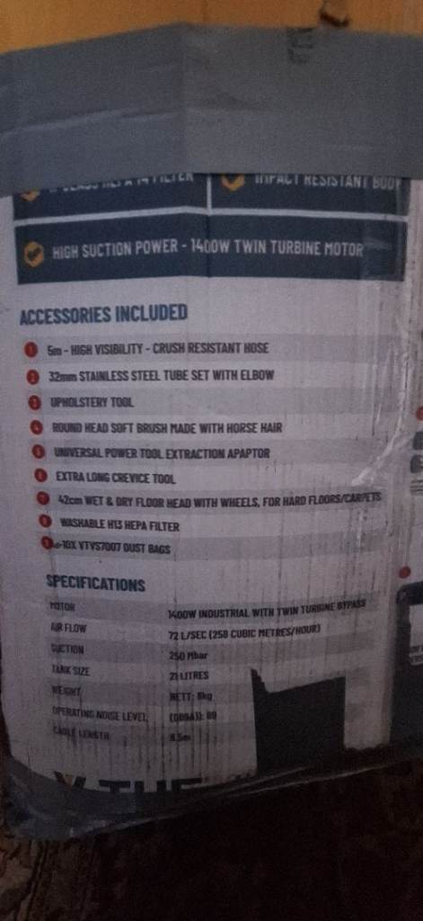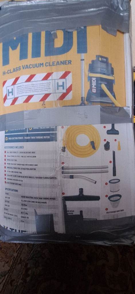 The vacuum cleaner v tuf midi240 1400w 21 ltr H class HEPA FILTRATION dust extractor is a powerful and efficient tool for cleaning carpets and other surfaces. With a HEPA filter, this bagged vacuum cleaner ensures that dust and allergens are captured effectively. The 1400W corded power source and energy efficiency rating of A make it a reliable choice for DIY and workshop tasks. Its compact size and included accessories, such as filters, make it a convenient and essential addition to any home or workshop.