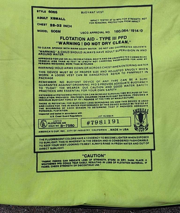 Life Jacket - Adult Xsmall - 28-32inch made in USA. Read description please.