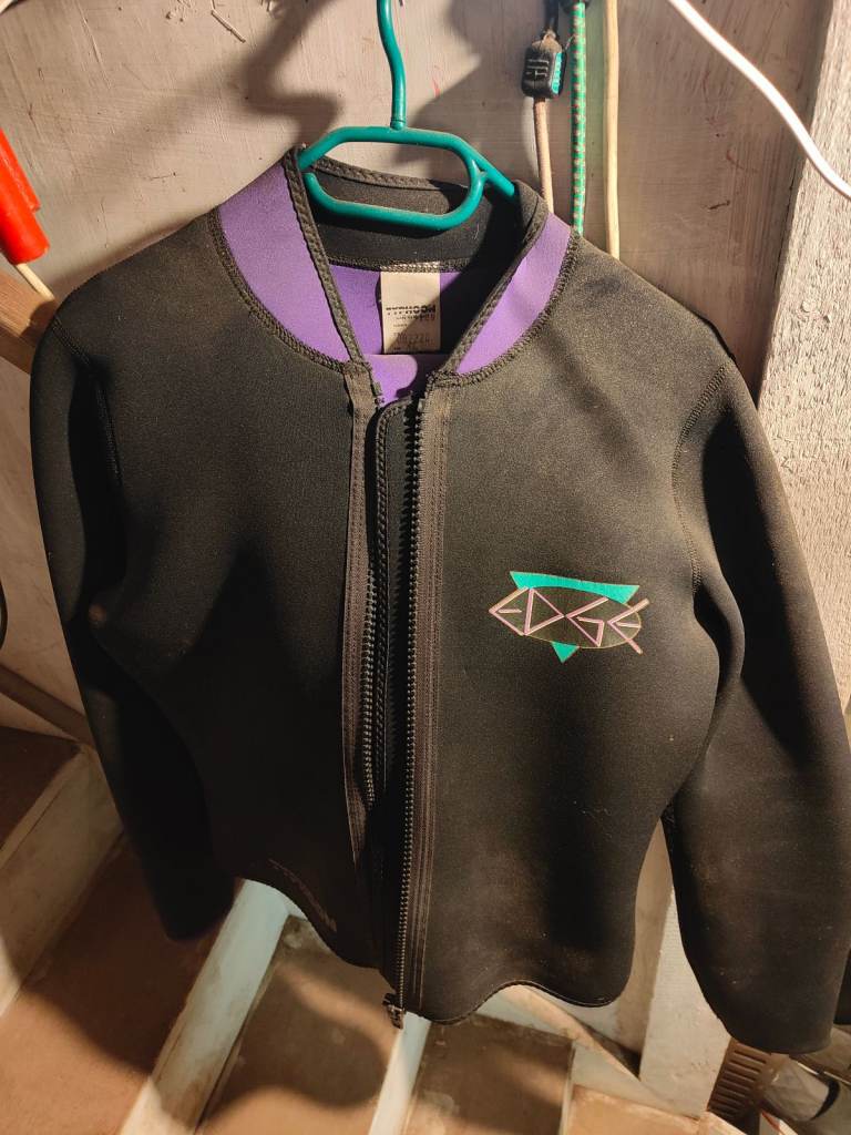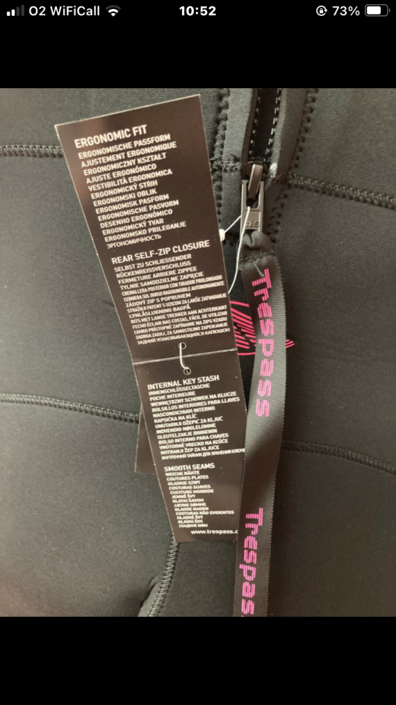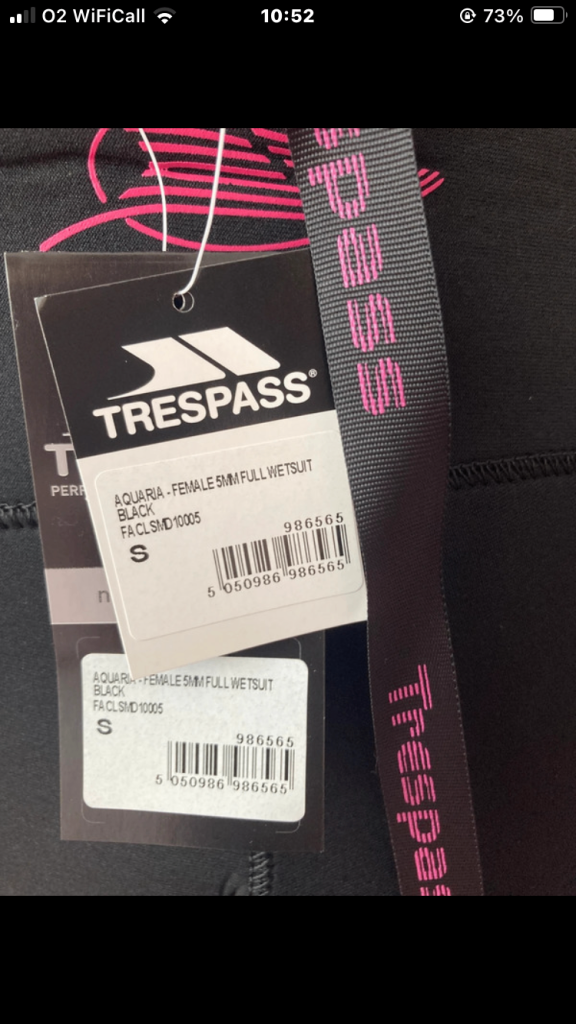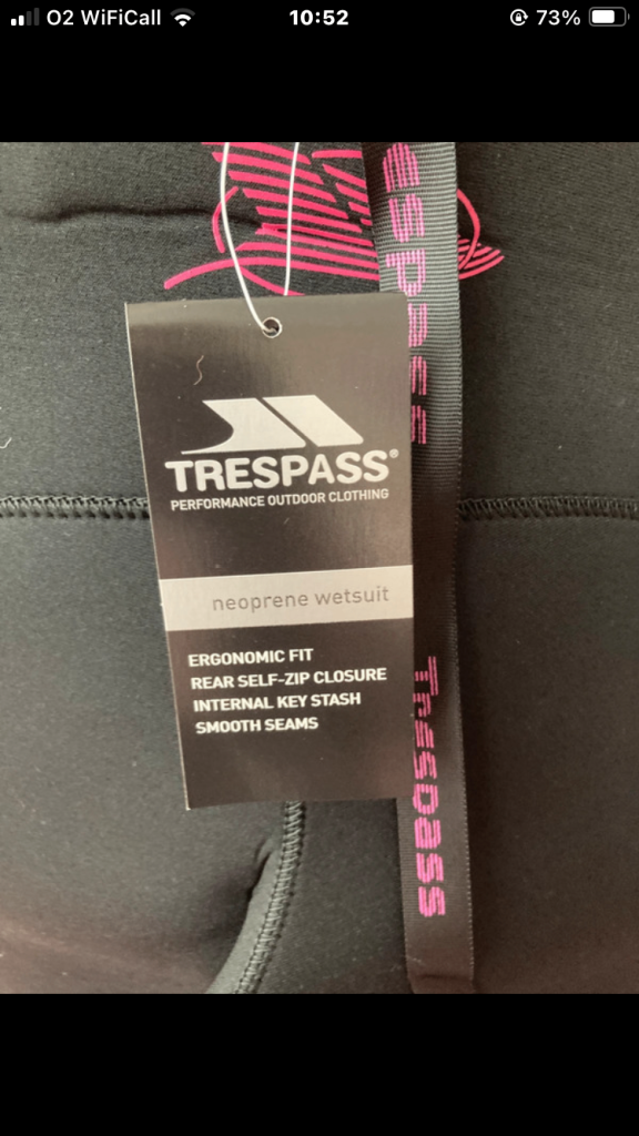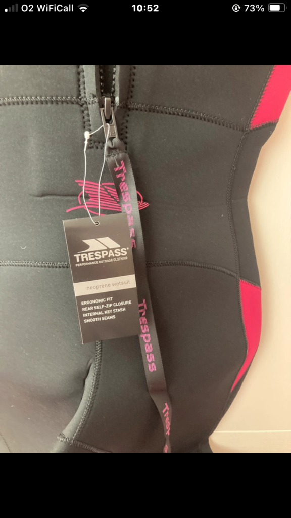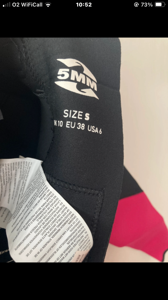 New with tags and original packaging. 5 mm full neoprene wetsuit. Internal key stash . Ergonomic fit and smooth seams. Small size 10. Black and pink. Cash on collection please.