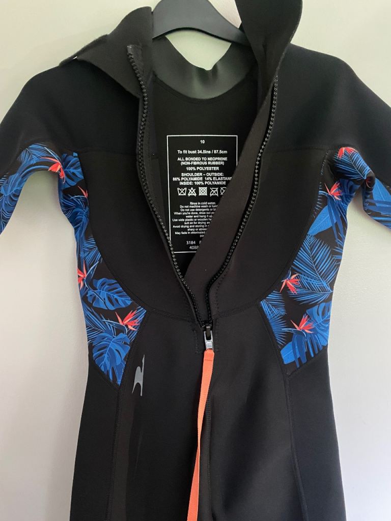 Ladies size 10-12 wet suit with hoodie if required