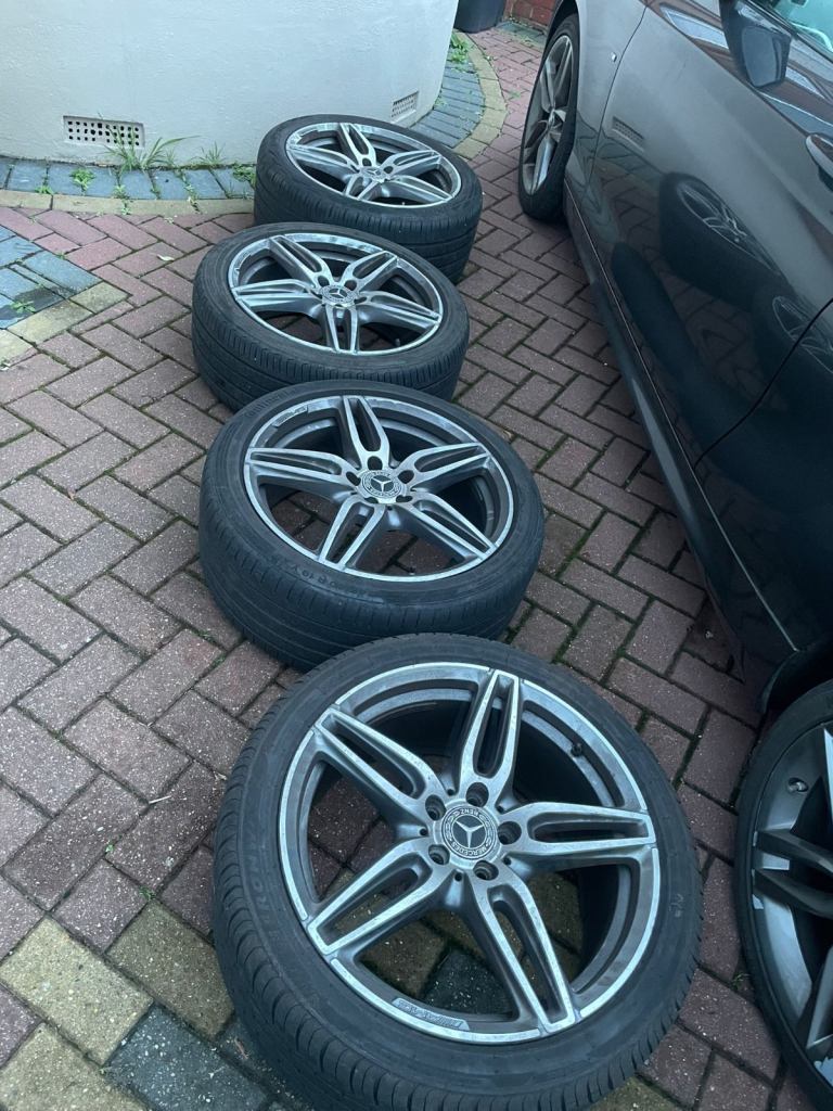 For sale are 19” original Mercedes-Benz E-Class diamond-cut alloy wheels with tyres.