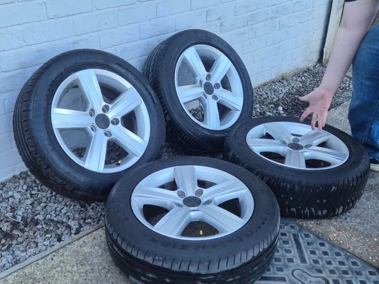 ๐Genuine Vw 16 inch alloy wheels 5x112 with TYRES 7M++ GOLF PASSAT CADDY AUDI SKODA SCIROCCO