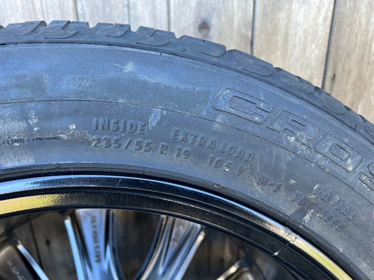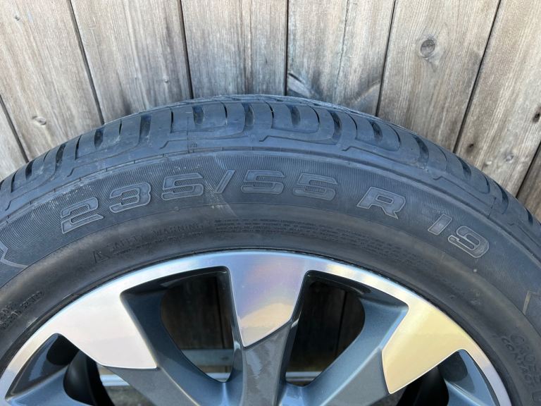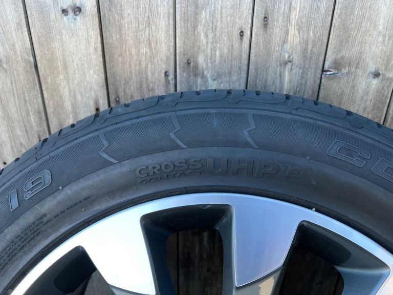 Full Size Alloy Wheel with Jacking Kit. Only used as Spare, in as new condition, complete with Tyre Pressure Monitoring Valve. Tyre - Continental Cross Contact UHP 235x55xR19 Rim - 8.0Jx19CHx55