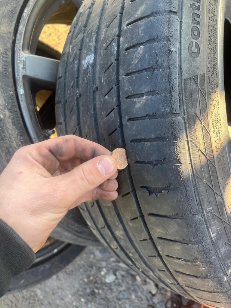 - Condition: Used - each wheel is slightly curbed