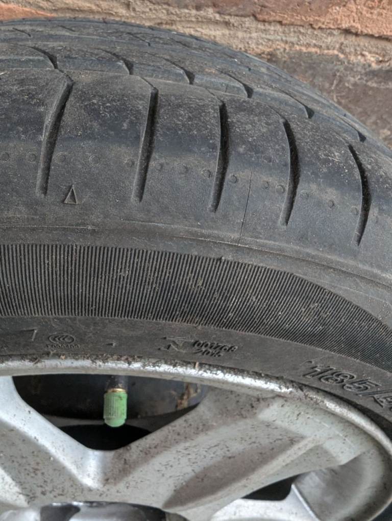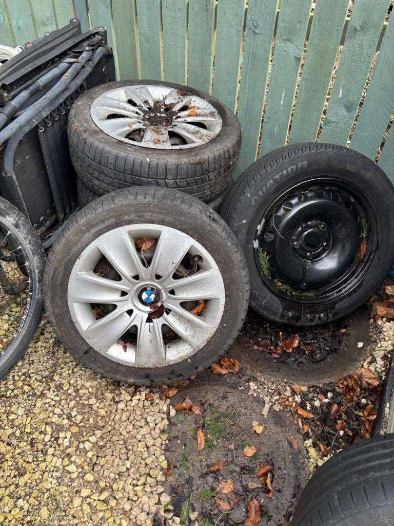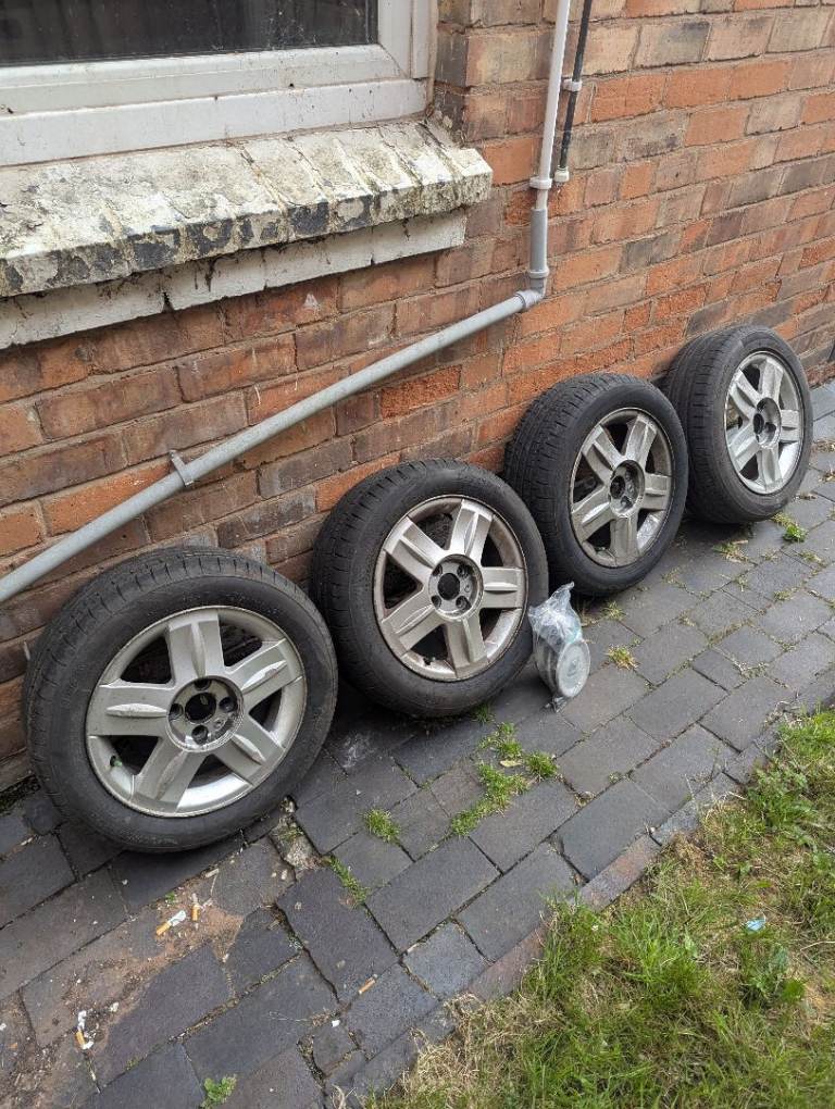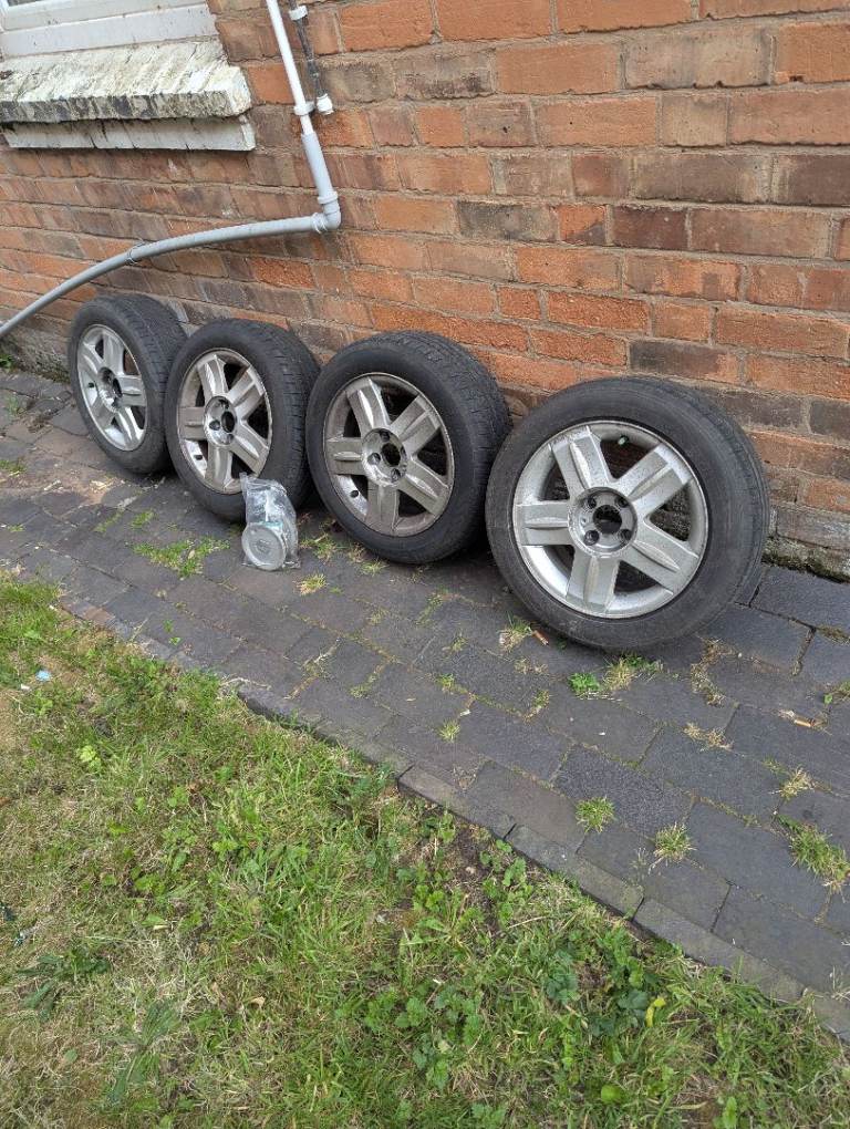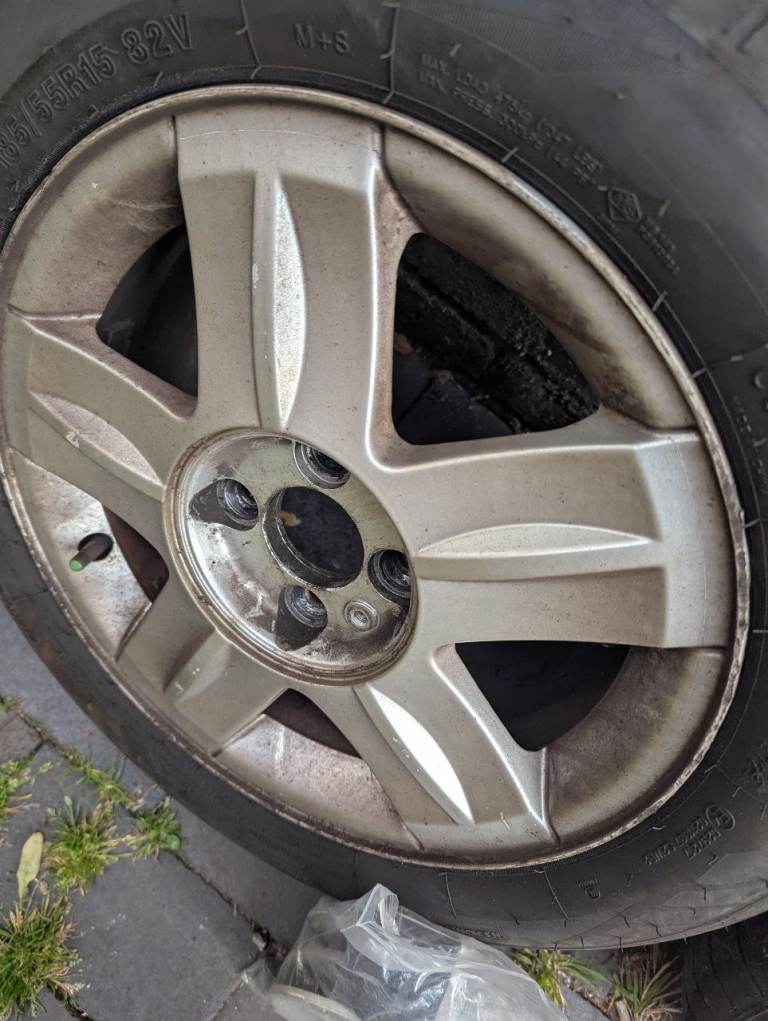4stud, 15"alloys, set of 4, very good tyre tread on all, locking center caps, with key.