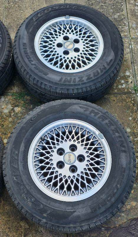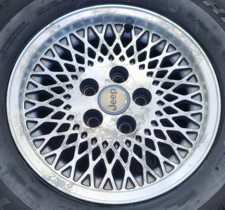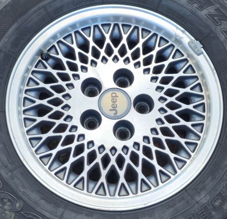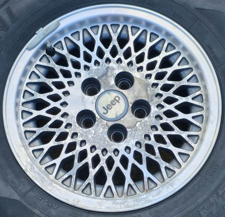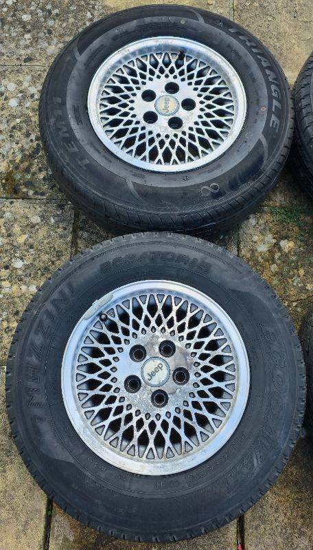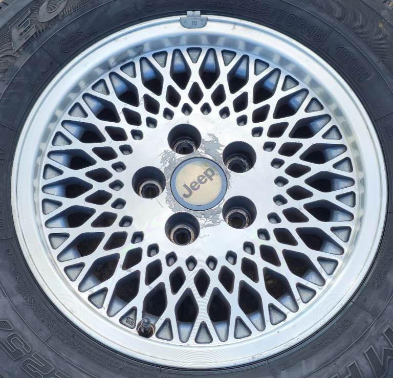 Posting for 2+ months15" OEM JEEP CHEROKEE XJ CLASSIC / RETRO 4x4 FULL SET + TYRES! GENUINE CONDITION