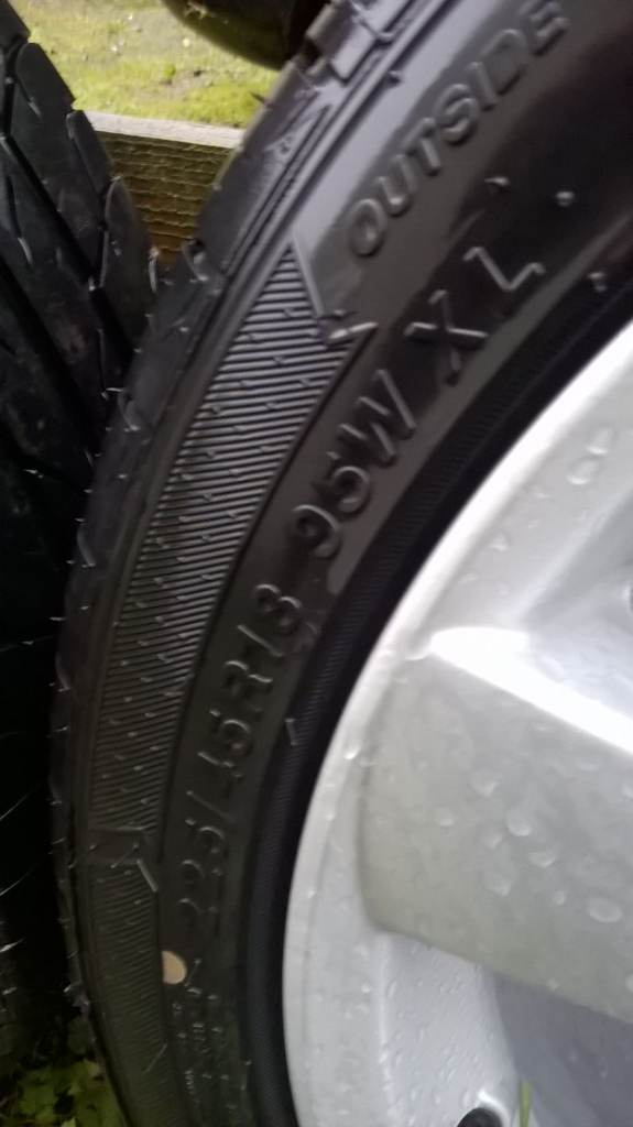 18" alloys with 225/45/18 tyres. 2 were new and 2 very good tread.