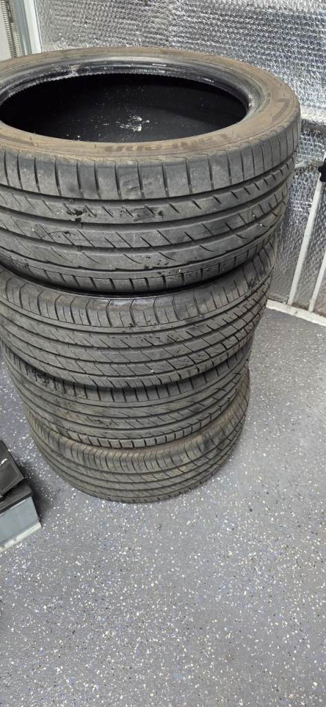 One wheel is cracked please see photo. All have kerb marking. Will need a refurb.