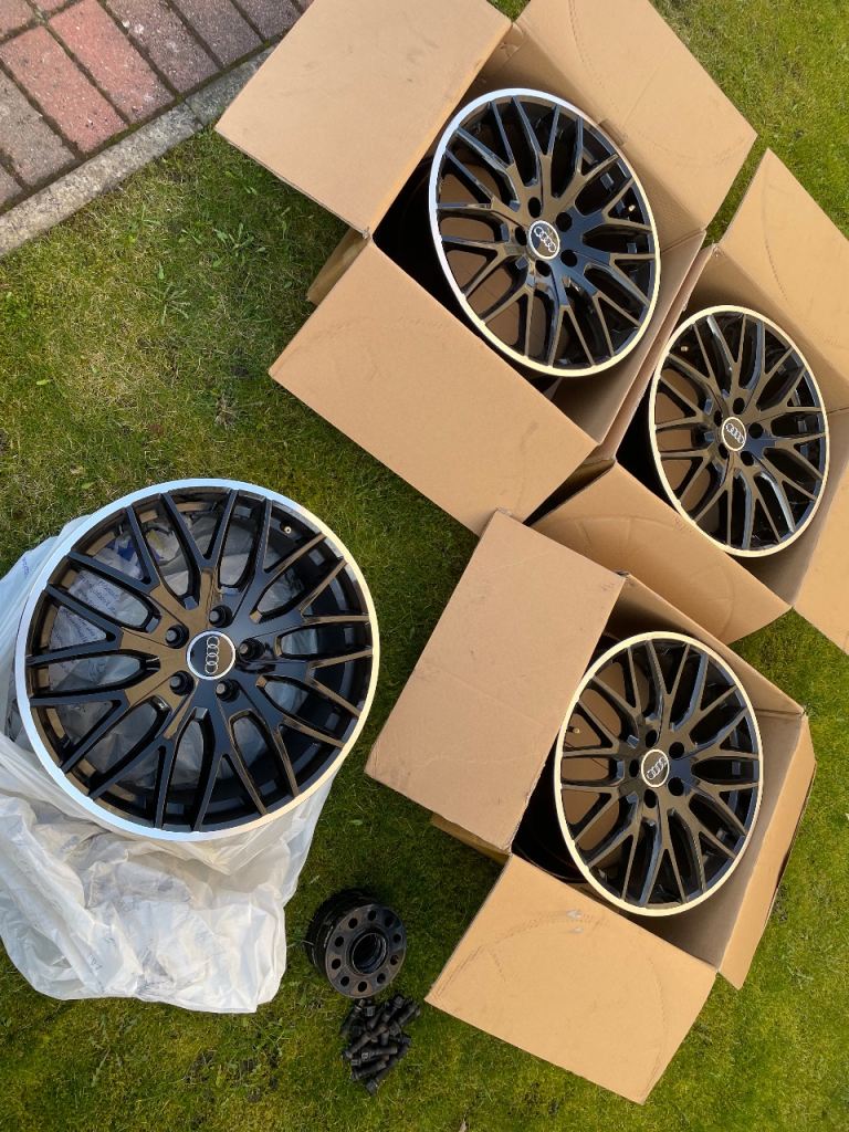 18” aftermarket wheels bought from skidz never been used, wheels were bought for Audi A5 but will fit most models, hub spacers and fixings come with wheels.