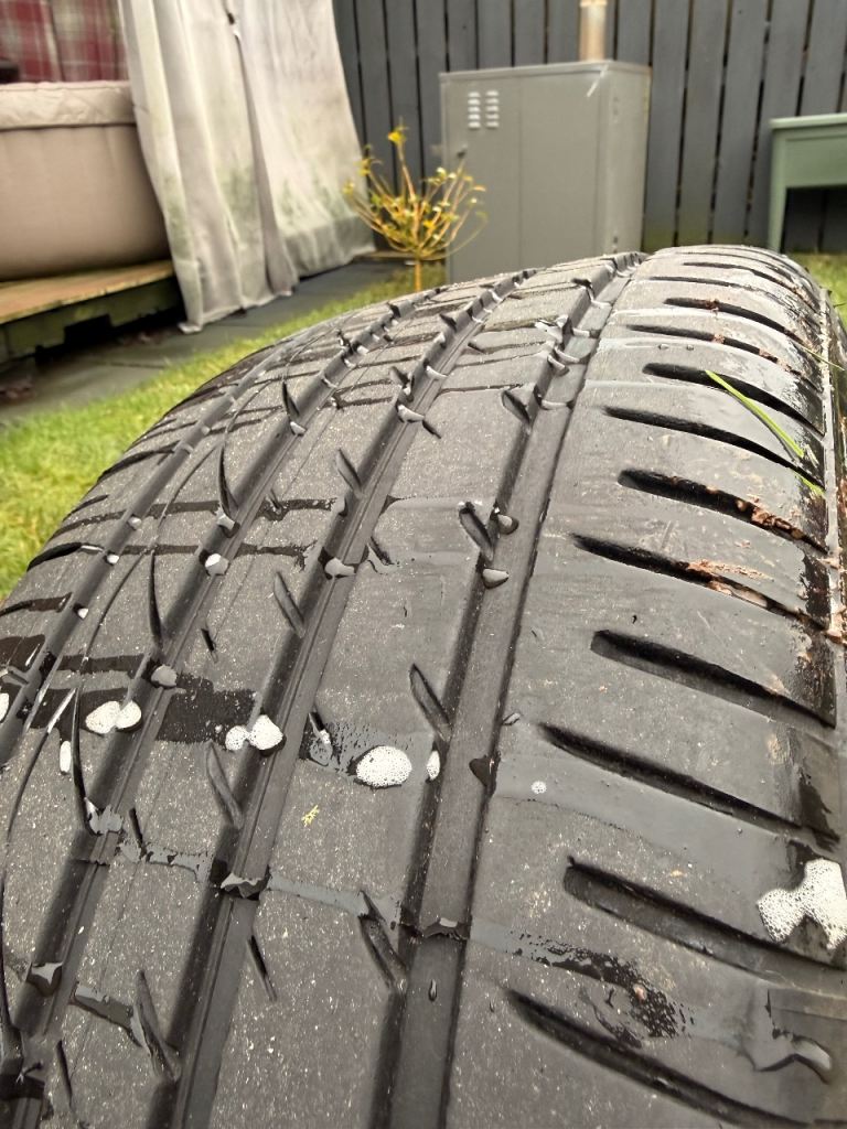 Two front tyres with plenty of thread, one back tyre doesn’t hold air!