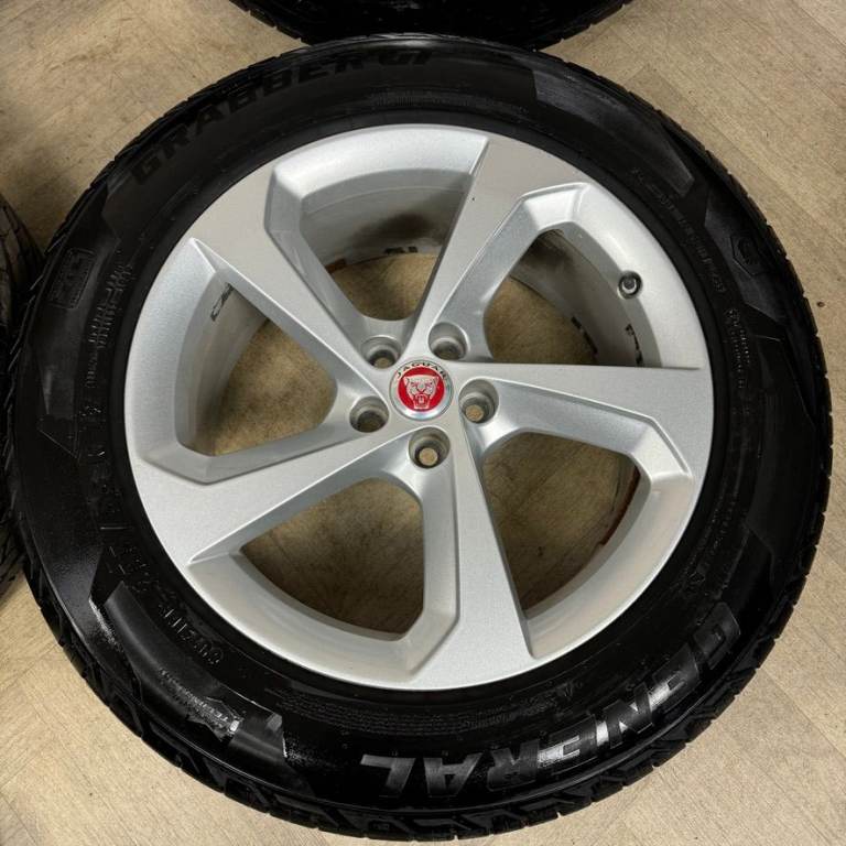 19'' GENUINE JAGUAR F PACE 5 SPOKE SILVER ALLOY WHEELS TYRES ALLOYS