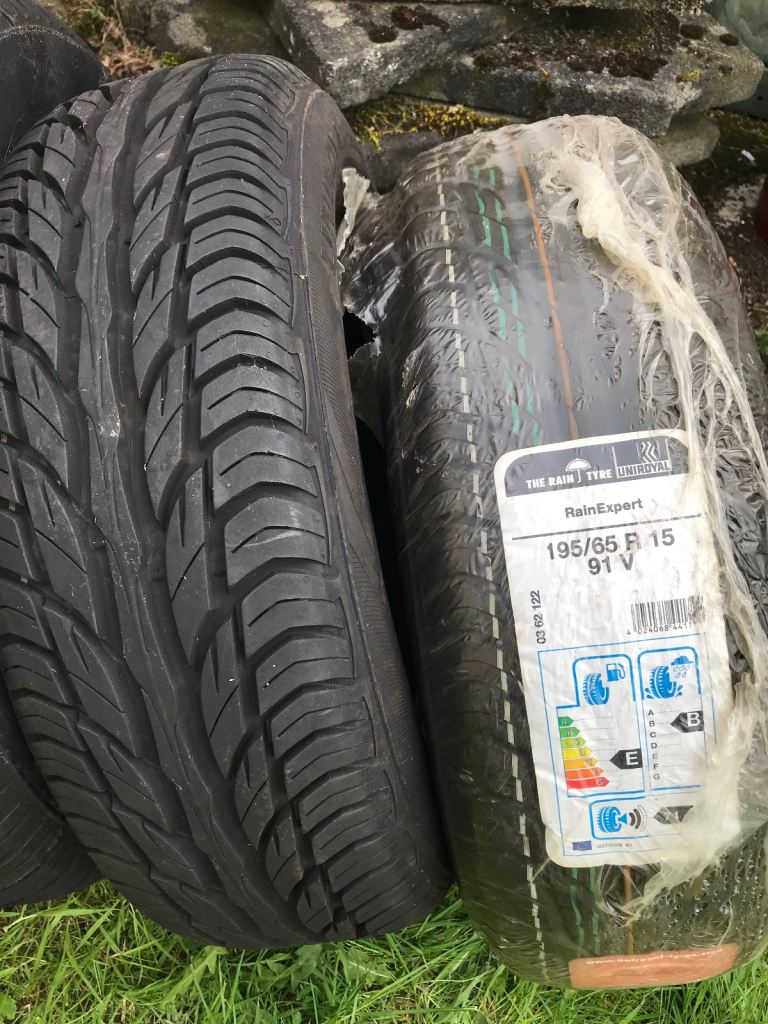 Pair of unused 195/65 R15 Extra Load Tyres. Nokian invented the winter tyre. Priced to sell at £80 for the pair. Plus 3rd tyre foc. It’s the left tyre in the last pic a Uniroyal 195/65 R15. It has a pin hole so it will require an inner tube £12 - £15 on eBay. It has only covered 100 - 200 miles. Please contact me with any questions. cheers Joe