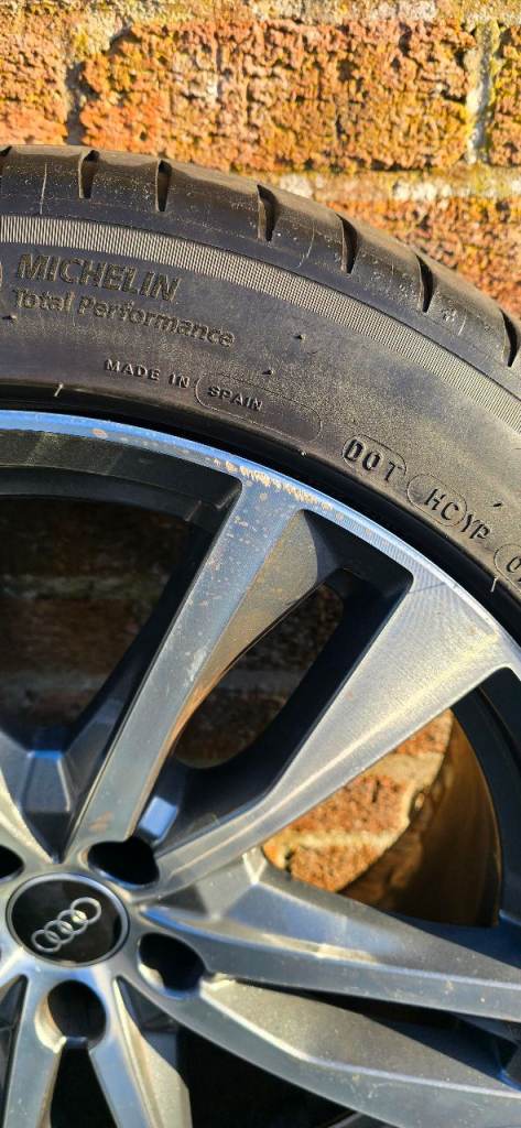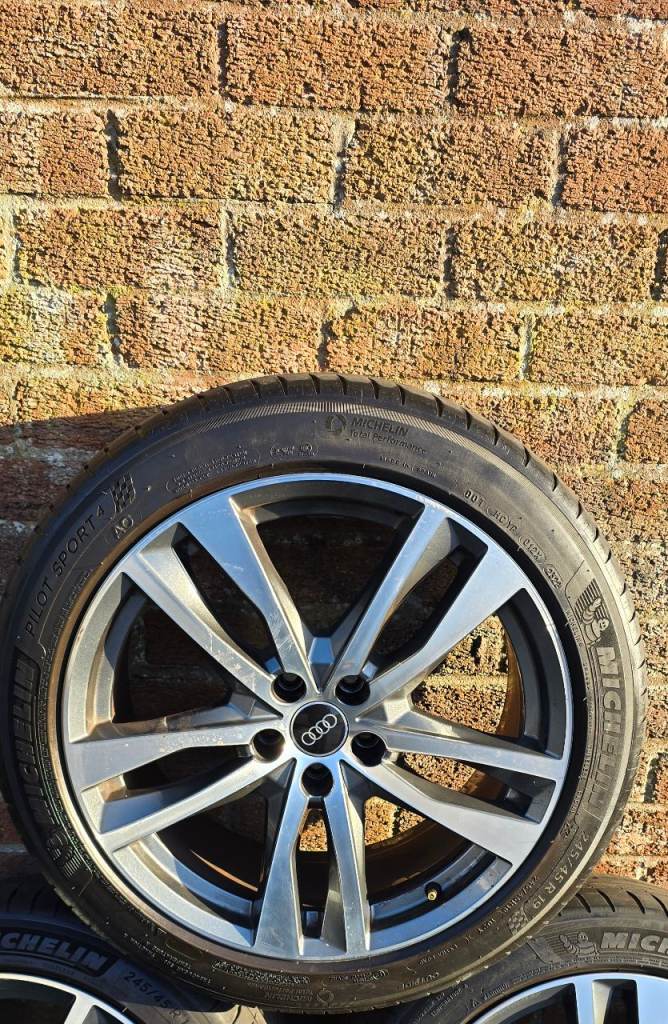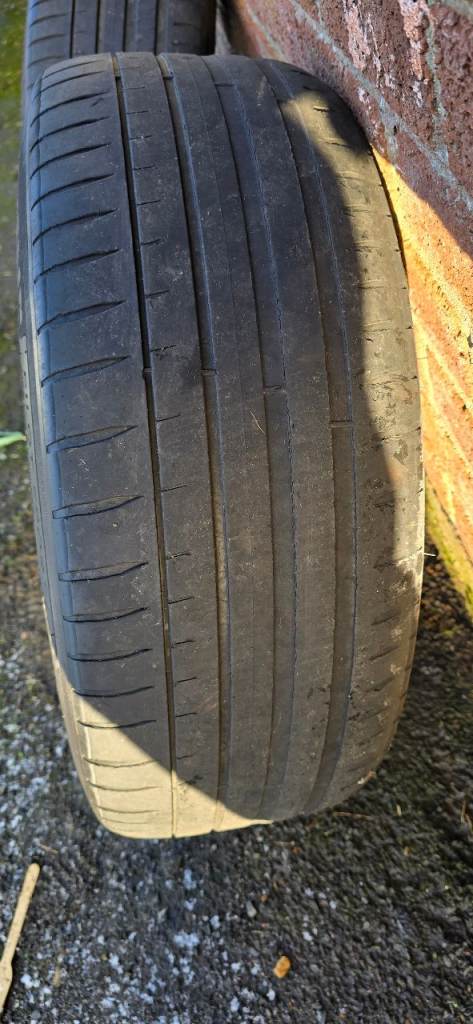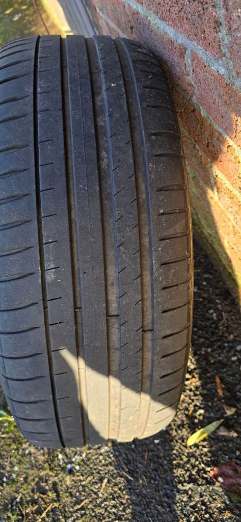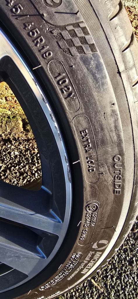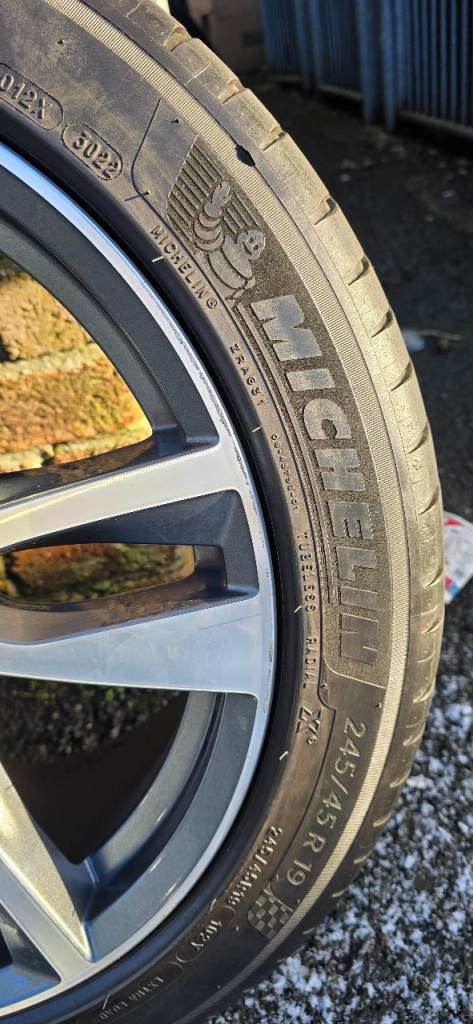 4 wheels and tyres. 3 alloys have slight kerbing but no welds or cracks and other alloy in near perfect condition. All come on Michelin pilot sport 4 tyres but one has just above minimum tread.