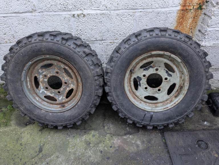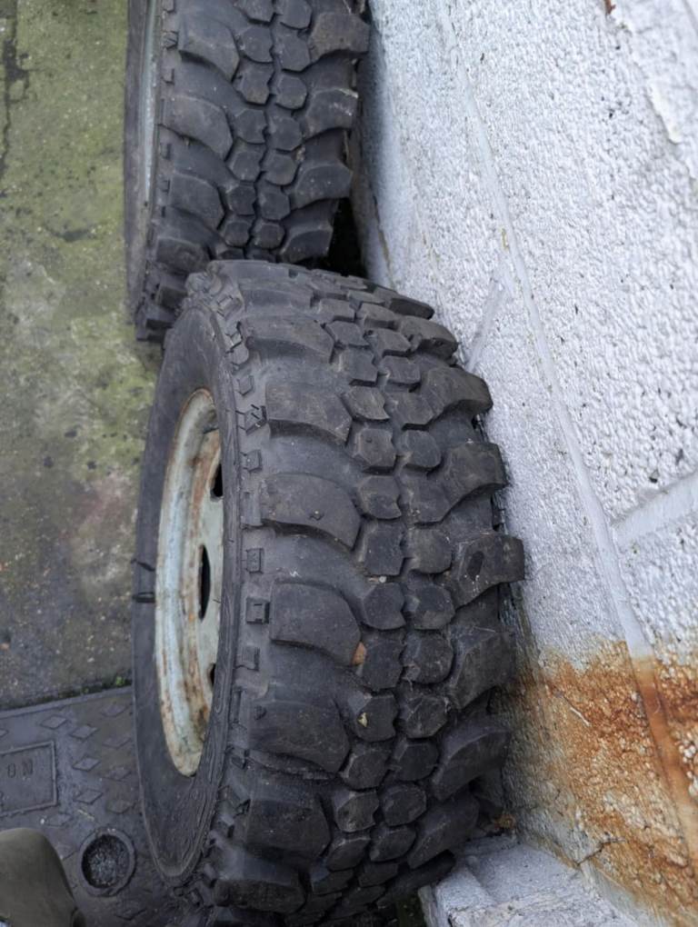 2 land Rover defender 16inch steel wheels with special track insa turbo 4x4 tyres. Size: 235/70R16. 1 is pumped up and holds air the other needs pumping up. They both still have an ok amount of tread left on them and will pass an mot. Both in good condition with the weights on them. £20 the pair medway