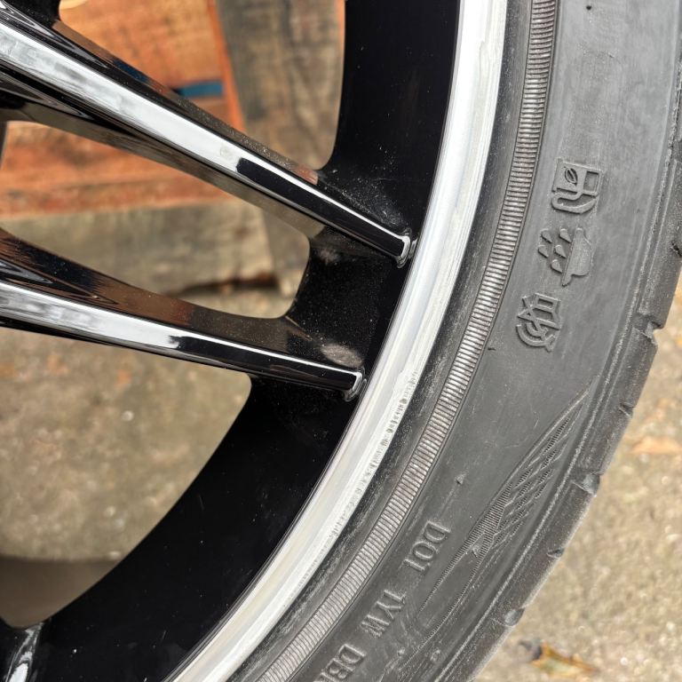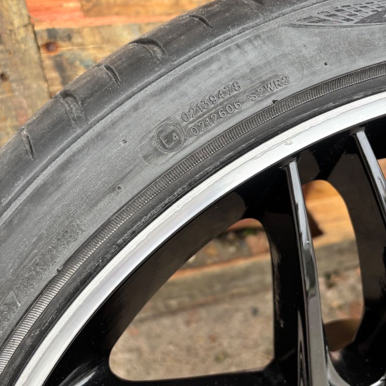 Wheels have been used and do have some kerbing rash around the outside which has been smoothed down a little with wet and dry, couple wheels have slight flat spots on inside rim edge thanks to our lovely roads but have had no cracks or welds. Tyres have 5-6mm tread remaining. Come with spigot rings and bolts for fitting.