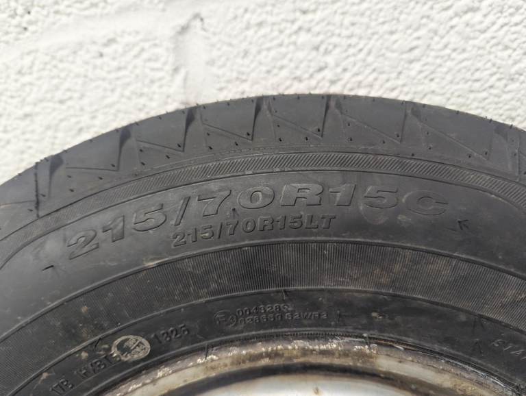 Used spare wheel in good condition overall and nearly new tyre. Size 215/70 R15C. Came from a Ford but will fit other cars, vans or SUVs for sure with 5 lugs and PCD of 114.3mm.