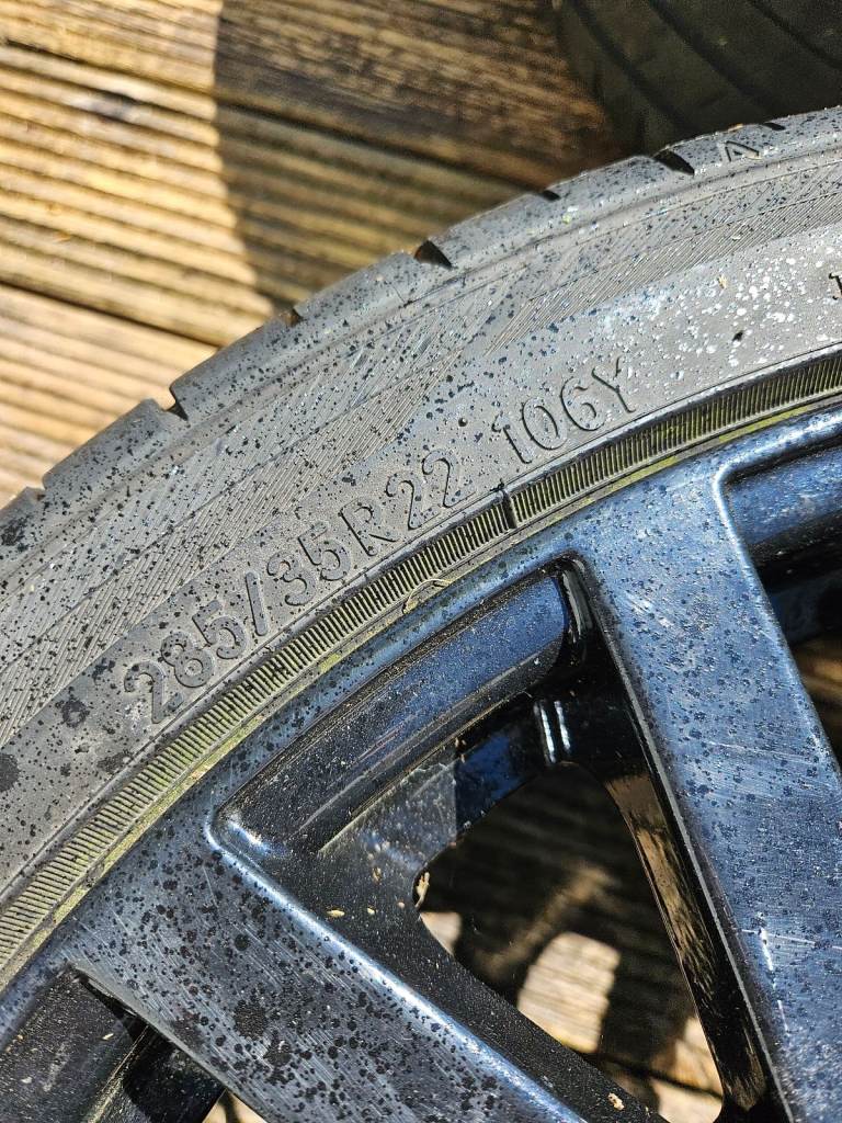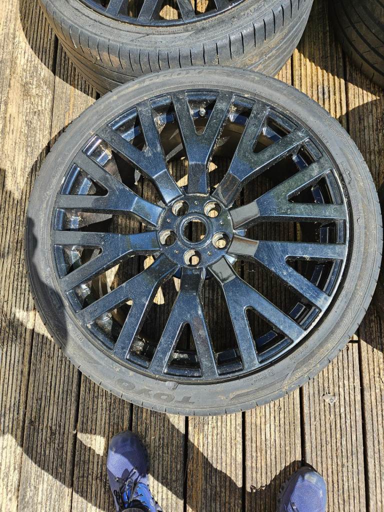 Bargain! I need the space! 5x120 pcd 9.5" wide. 2 perfect 2 with slight easily fixed kerb rash. 4 matching Toyo Proxes 285 35 22.